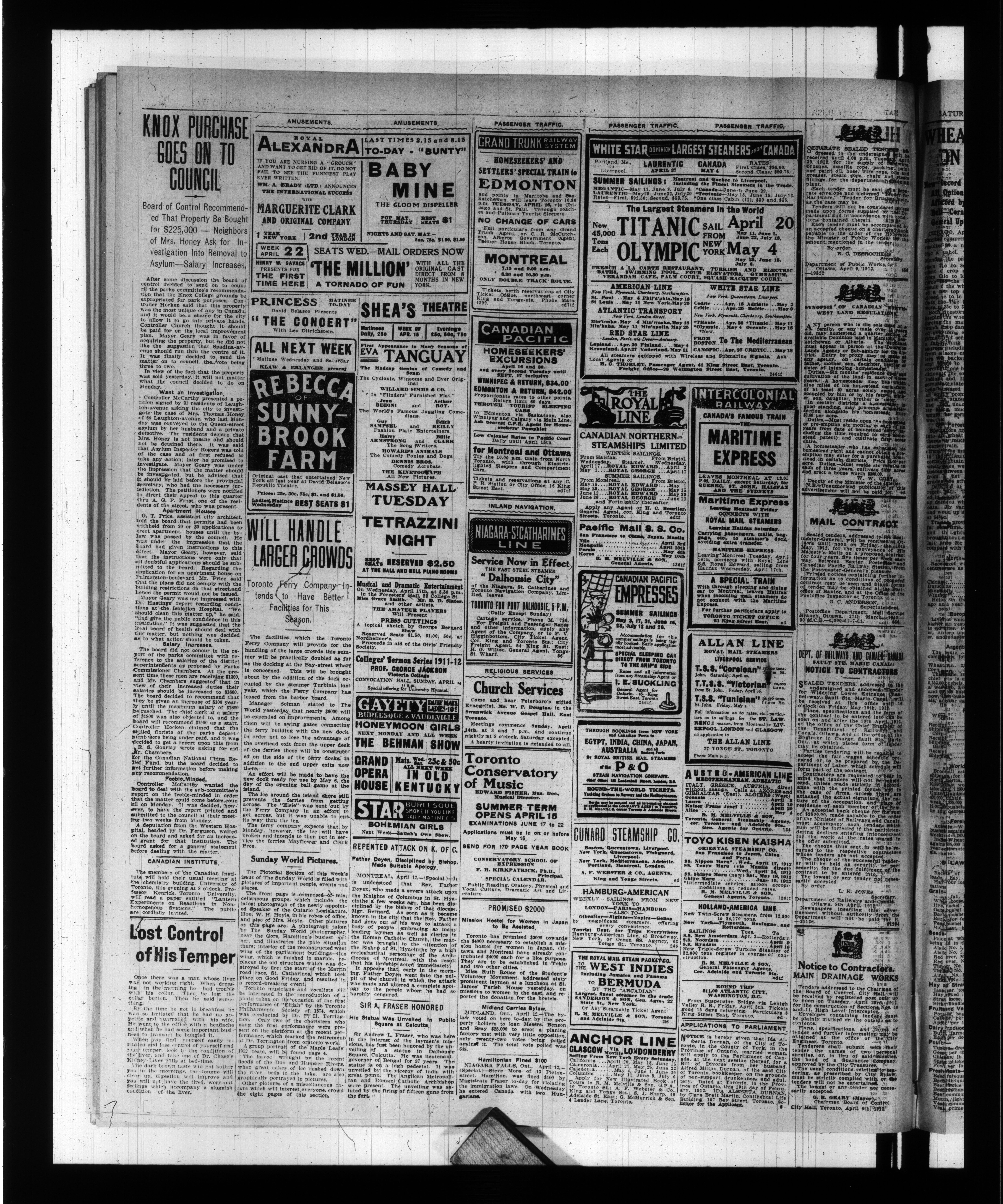 The Toronto world : Vol. XXXII, No. 11,577 (April 13, 1912)