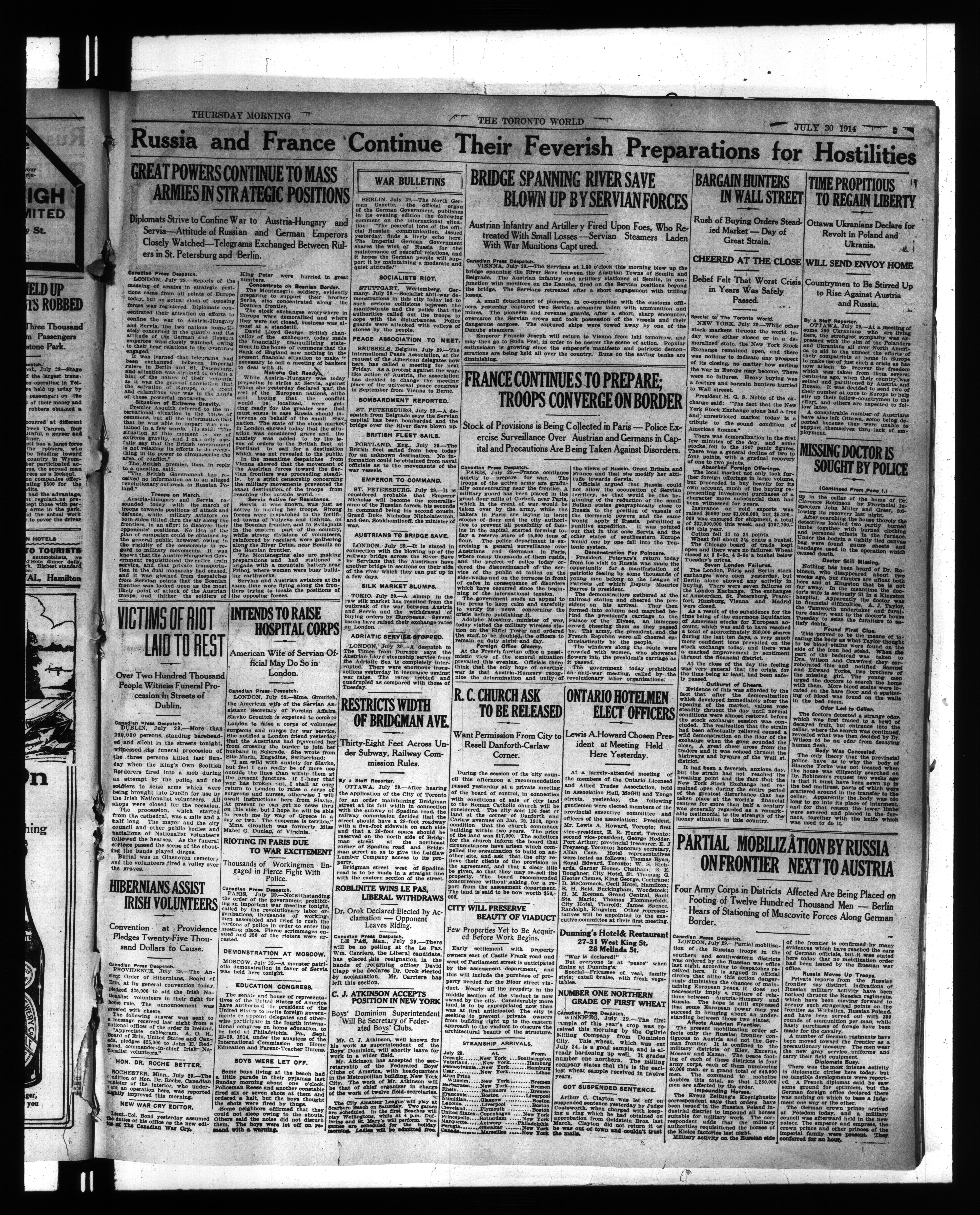 The Toronto world : Vol. XXXIV, No. 12,314 (July 30, 1914)