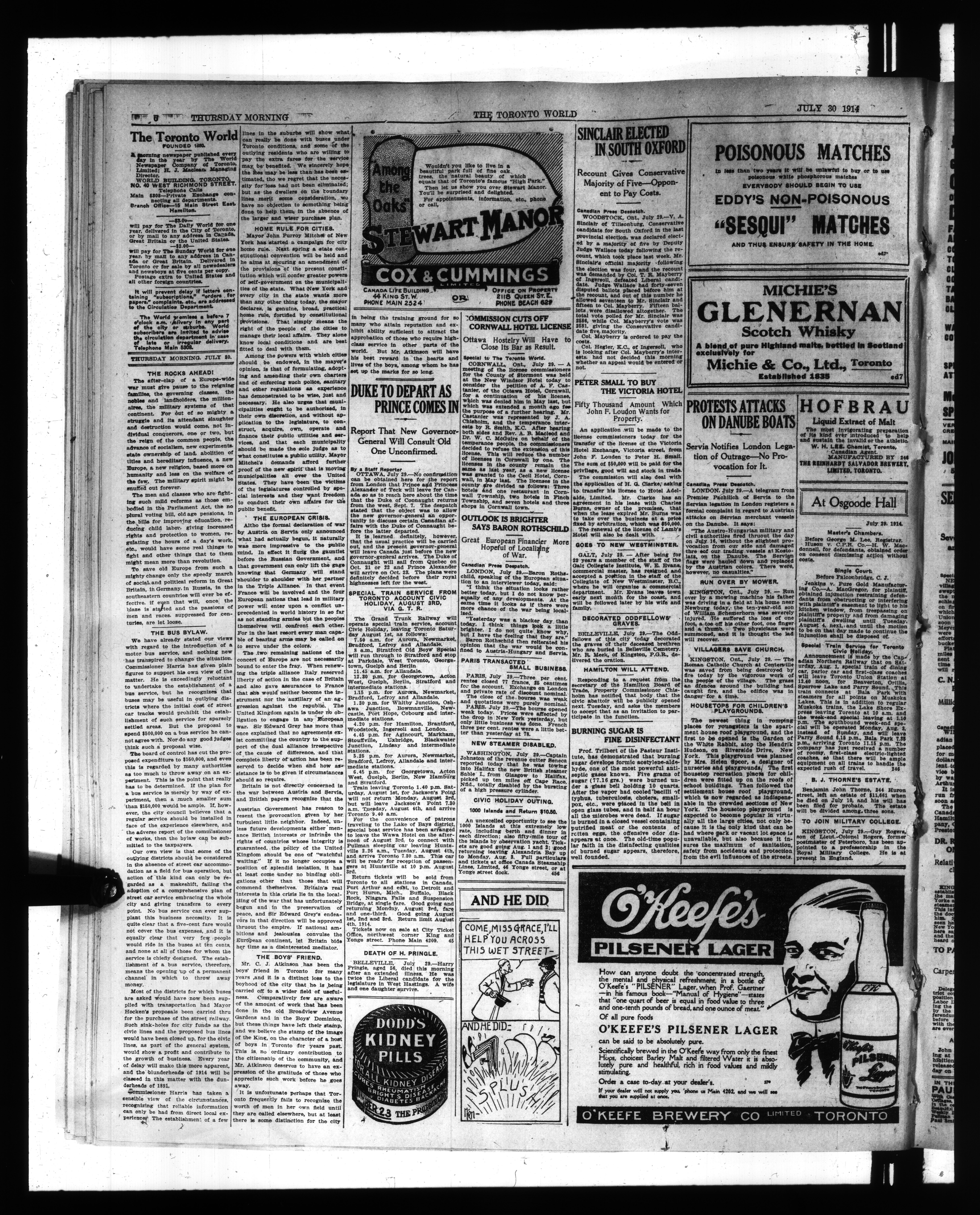 The Toronto world : Vol. XXXIV, No. 12,314 (July 30, 1914)