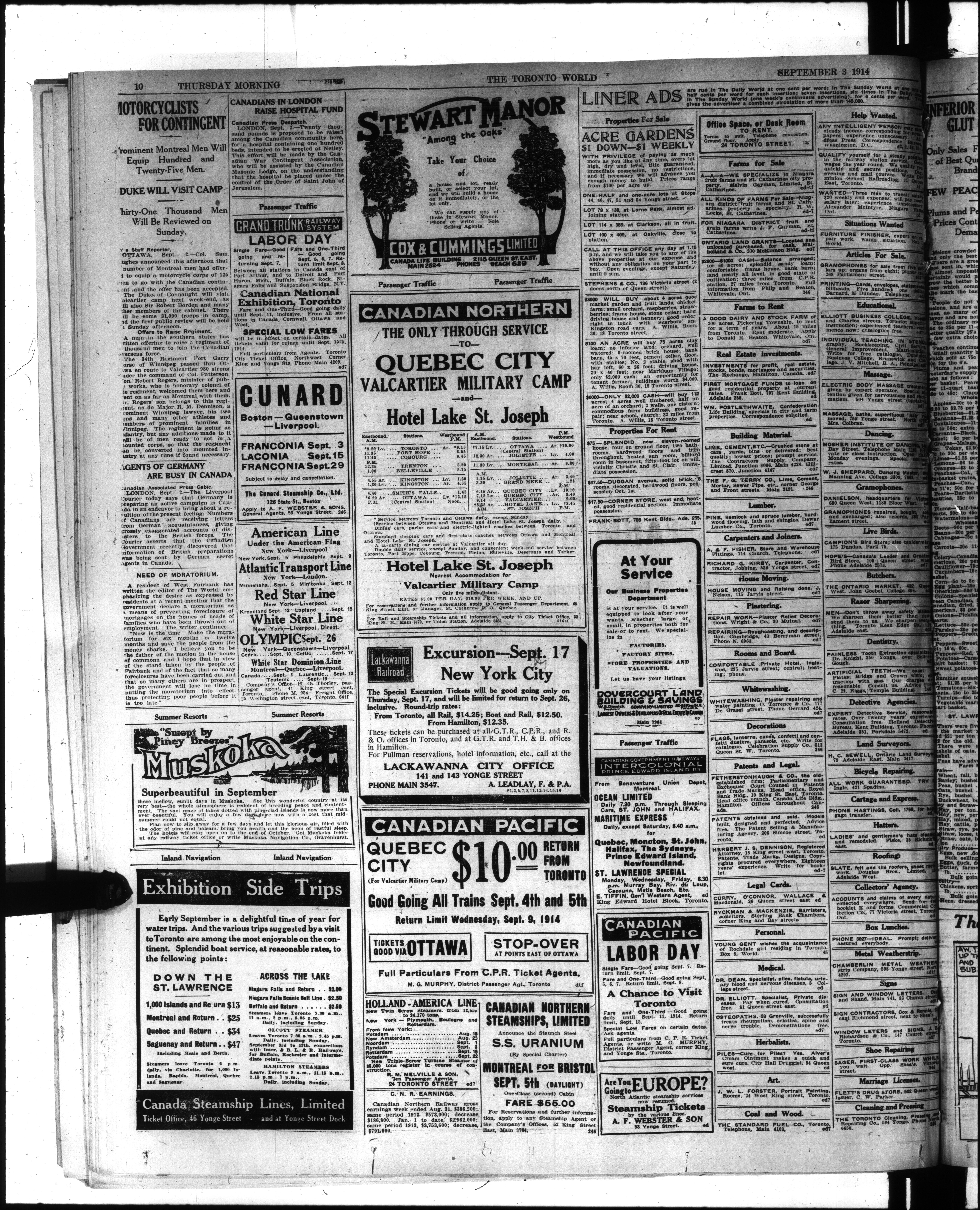 The Toronto world : Vol. XXXIV, No. 12,349 (September 3, 1914)