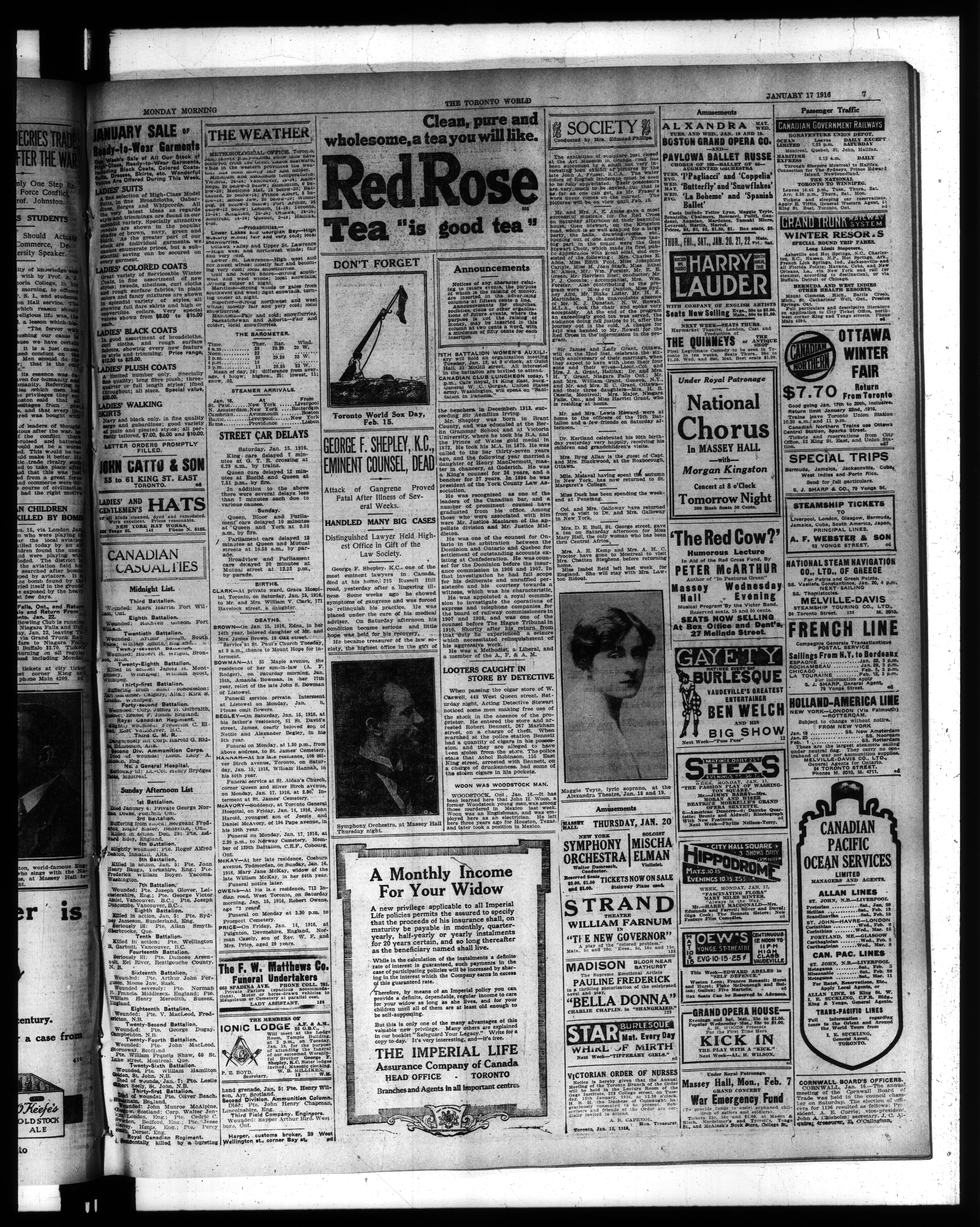 The Toronto world : Vol. XXXVI, No. 12,850 (January 17, 1916)