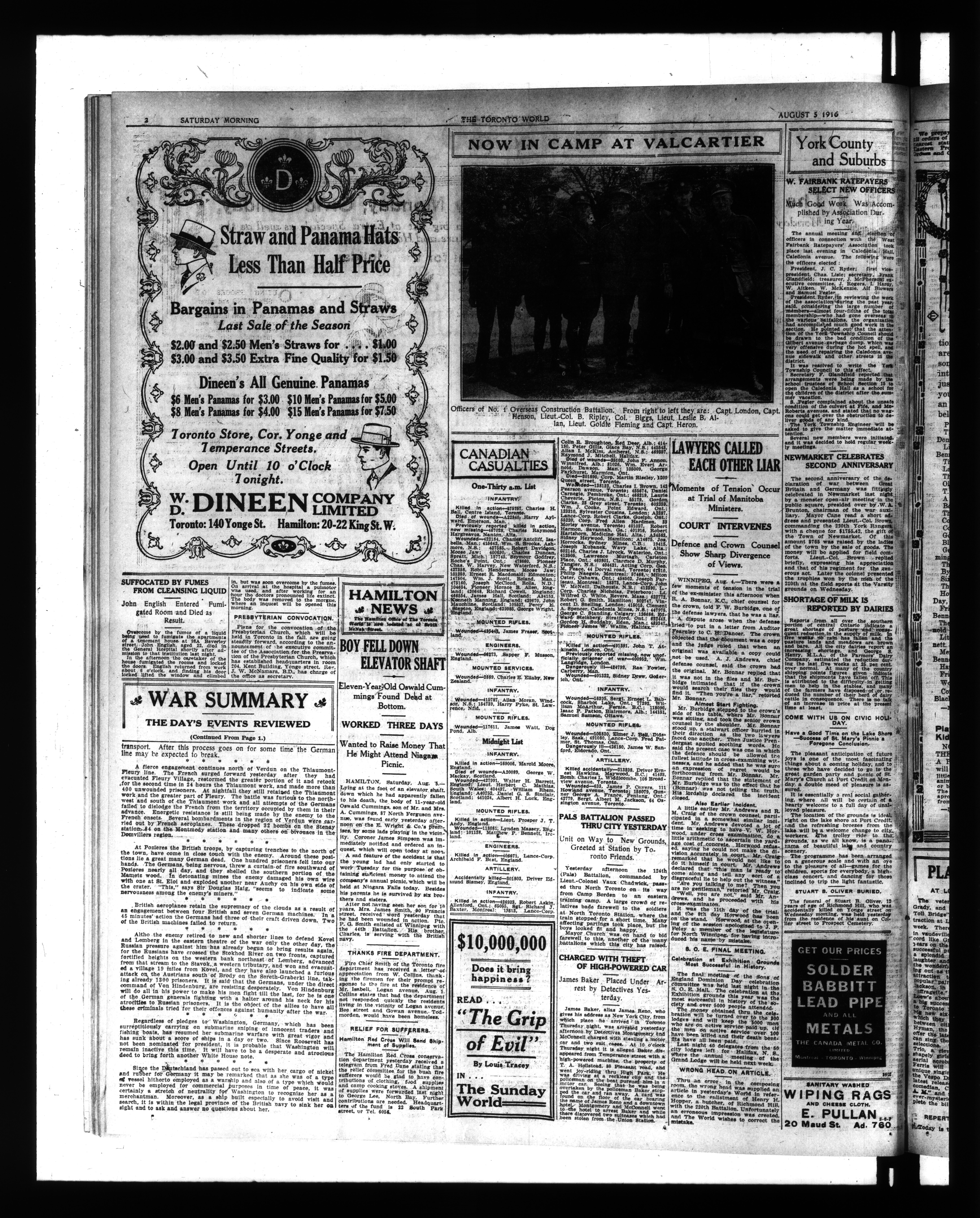 The Toronto world : Vol. XXXVI, No. 13,051 (August 5, 1916)