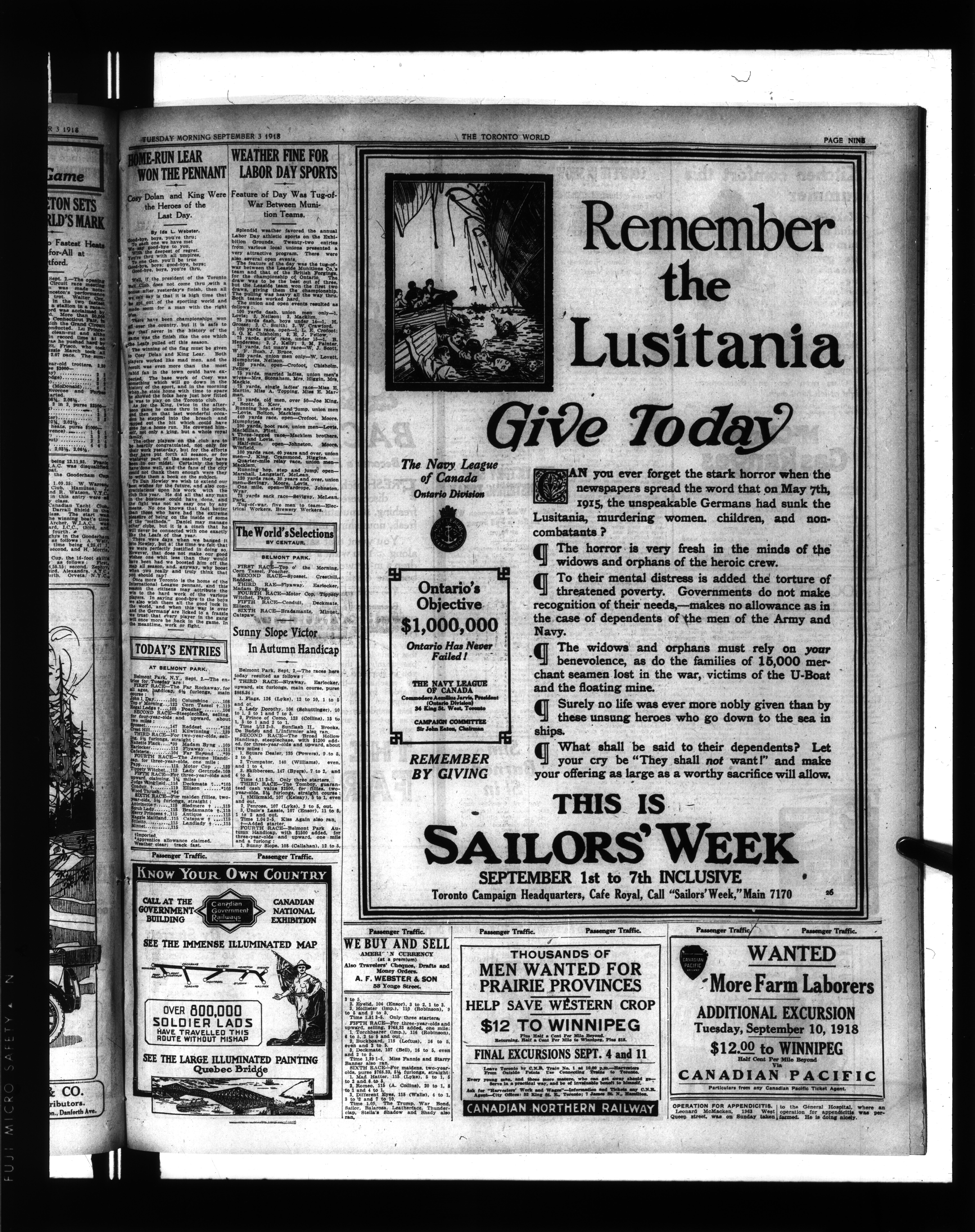 The Toronto world : Vol. XXXVIII, No. 13,810 (September 3, 1918)