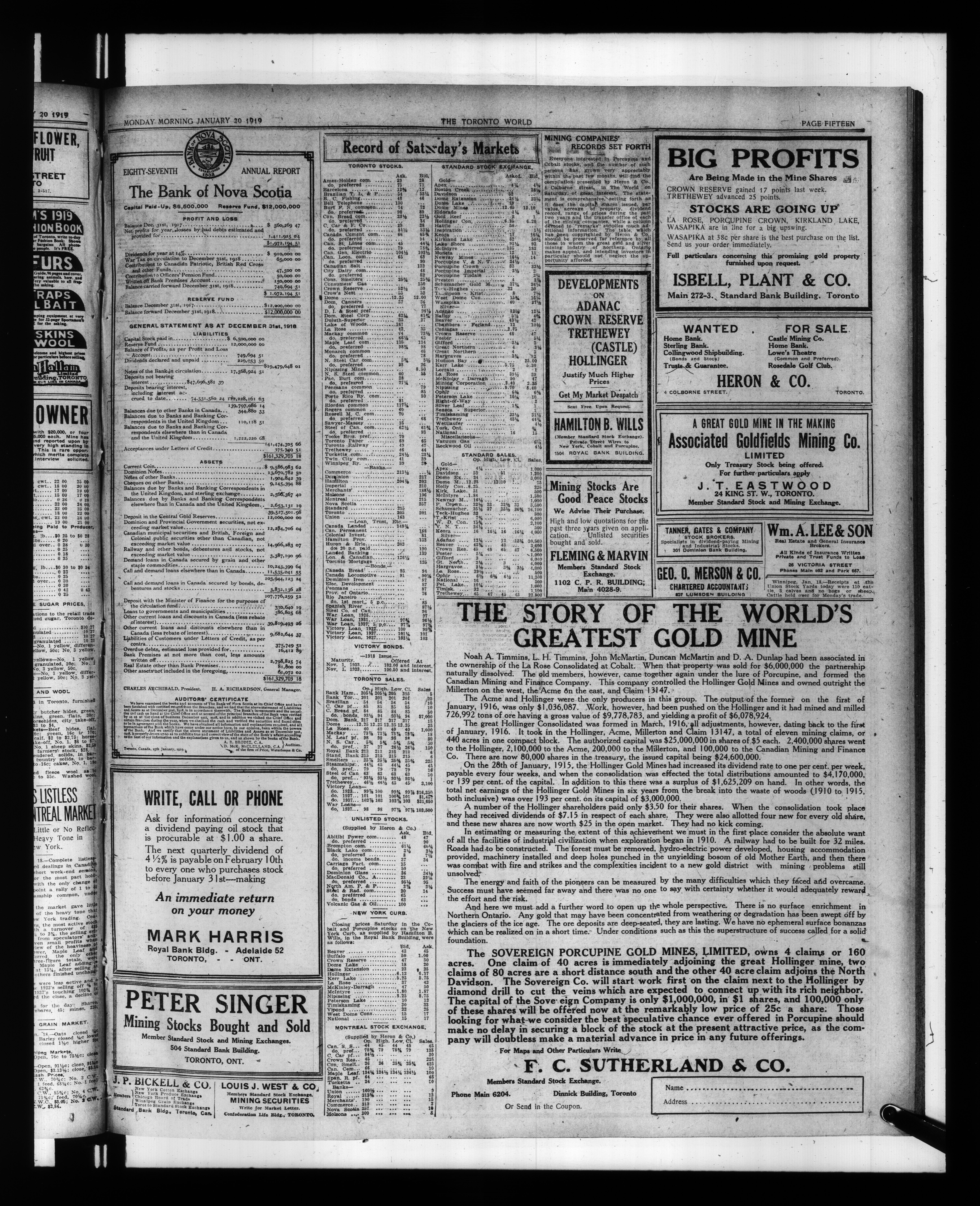 The Toronto world : Vol. XXXIX, No. 13,949 (January 20, 1919)