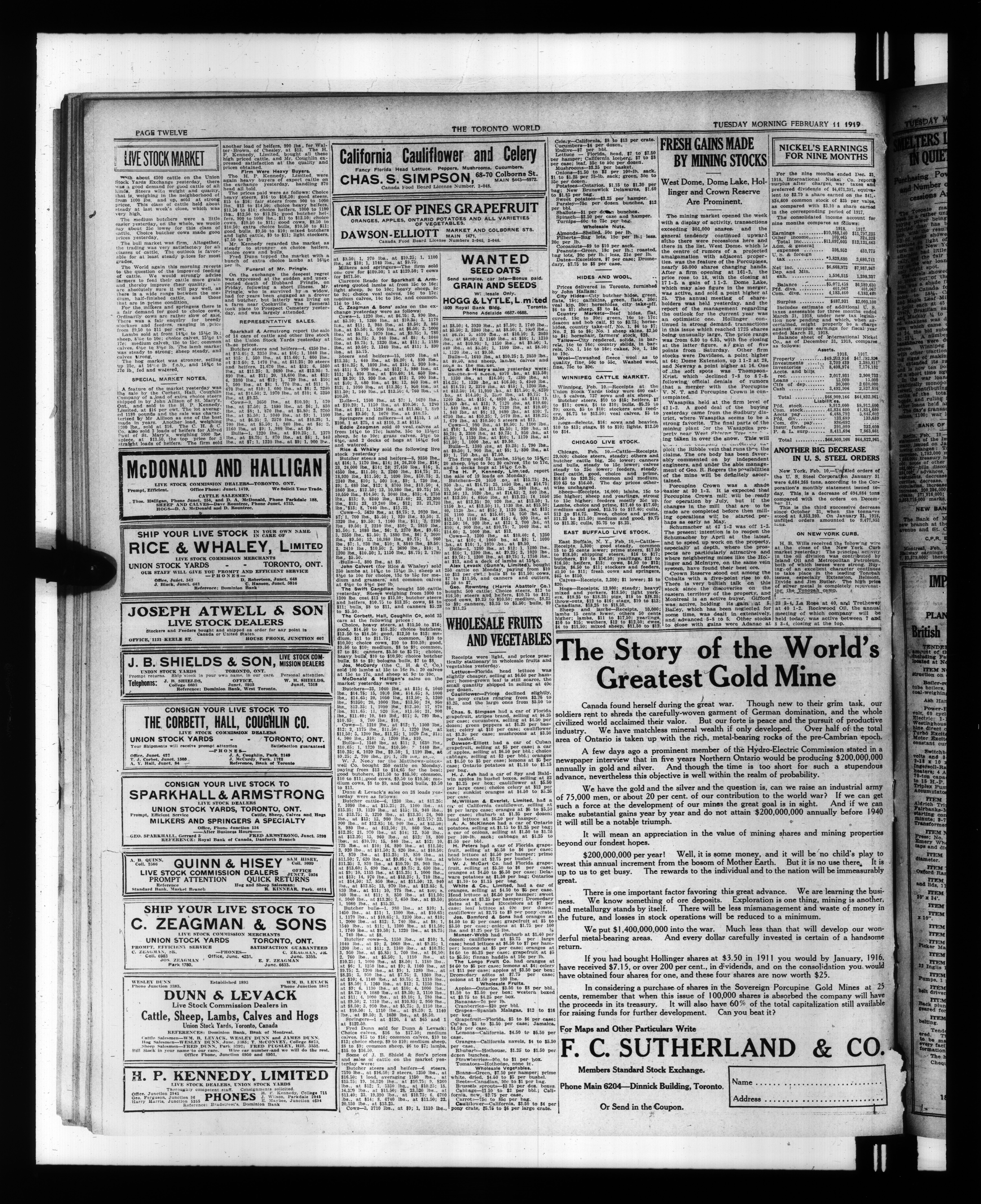The Toronto world : Vol. XXXIX, No. 13,971 (February 11, 1919)