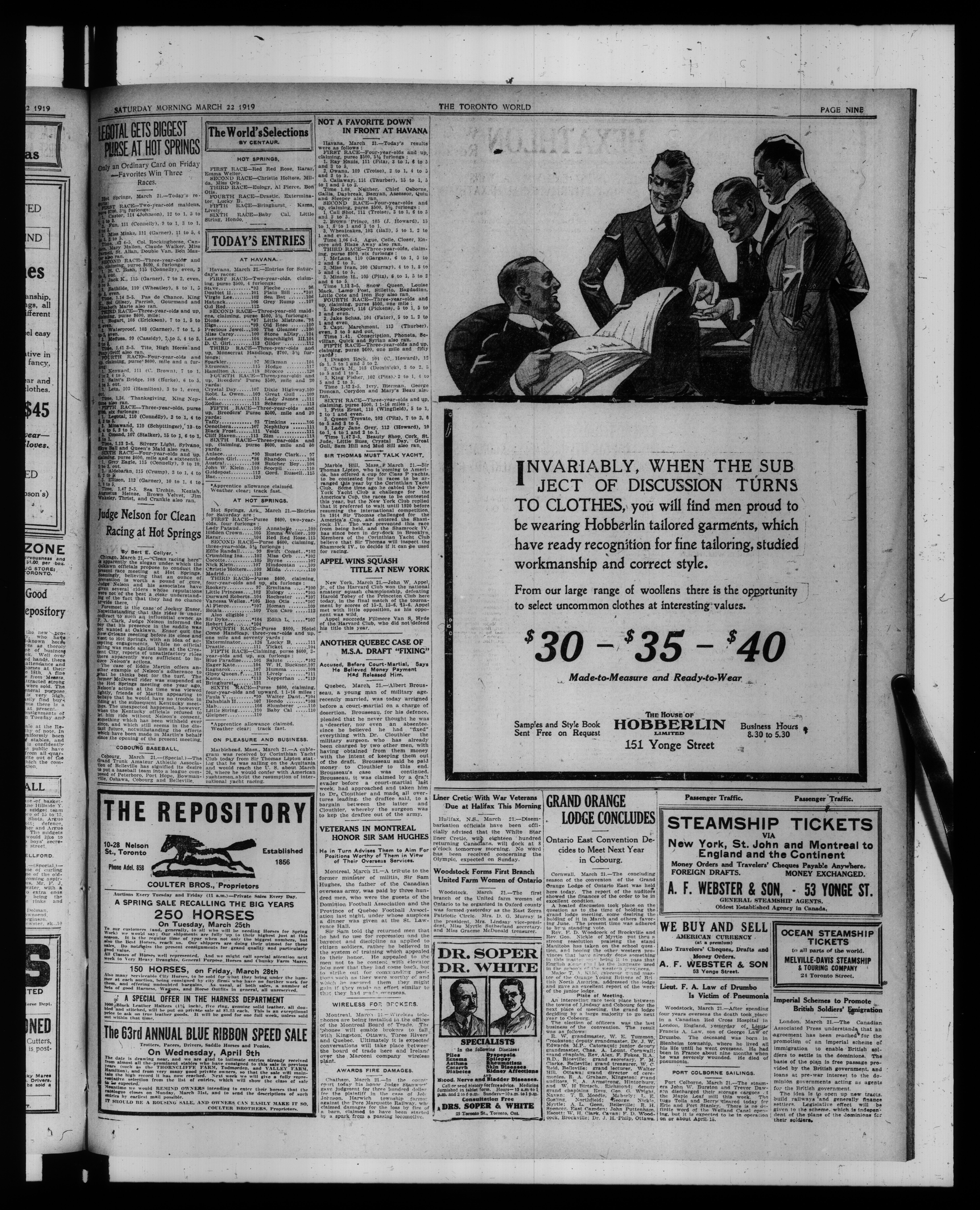 The Toronto world : Vol. XXXIX, No. 14,010 (March 22, 1919)