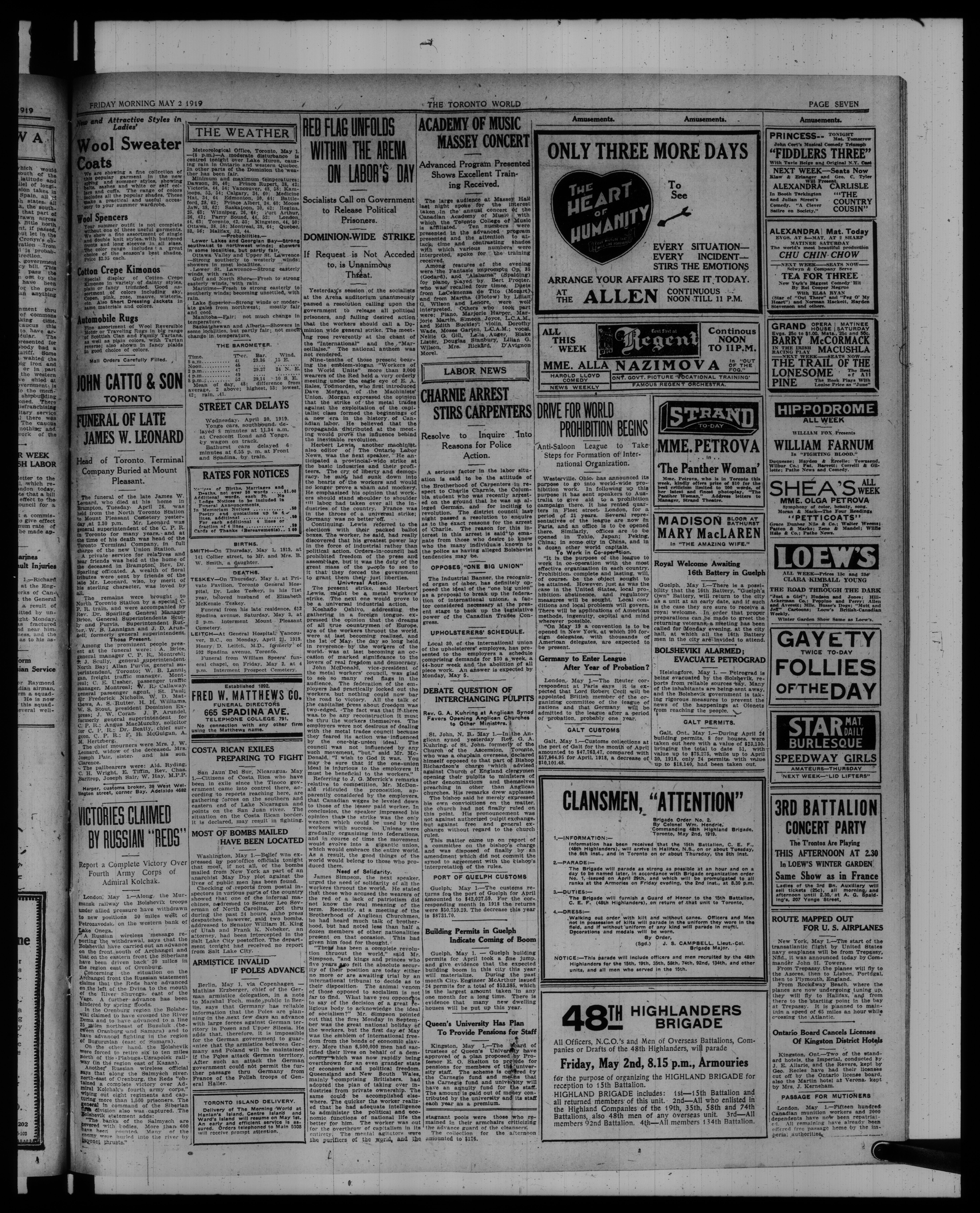 The Toronto world : Vol. XXXIX, No. 14,051 (May 2, 1919)