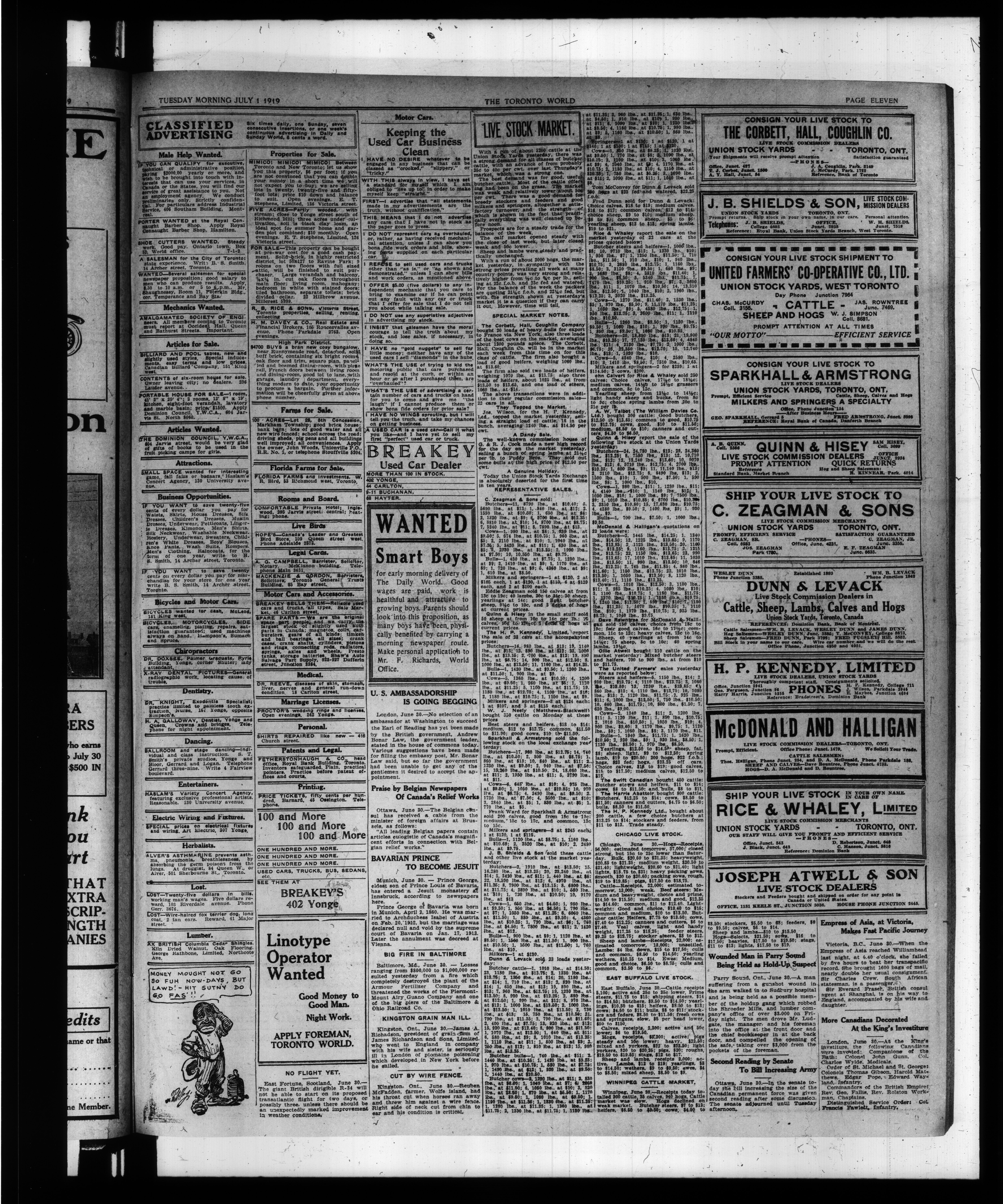 The Toronto world : Vol. XXXIX, No. 14,111 (July 1, 1919)