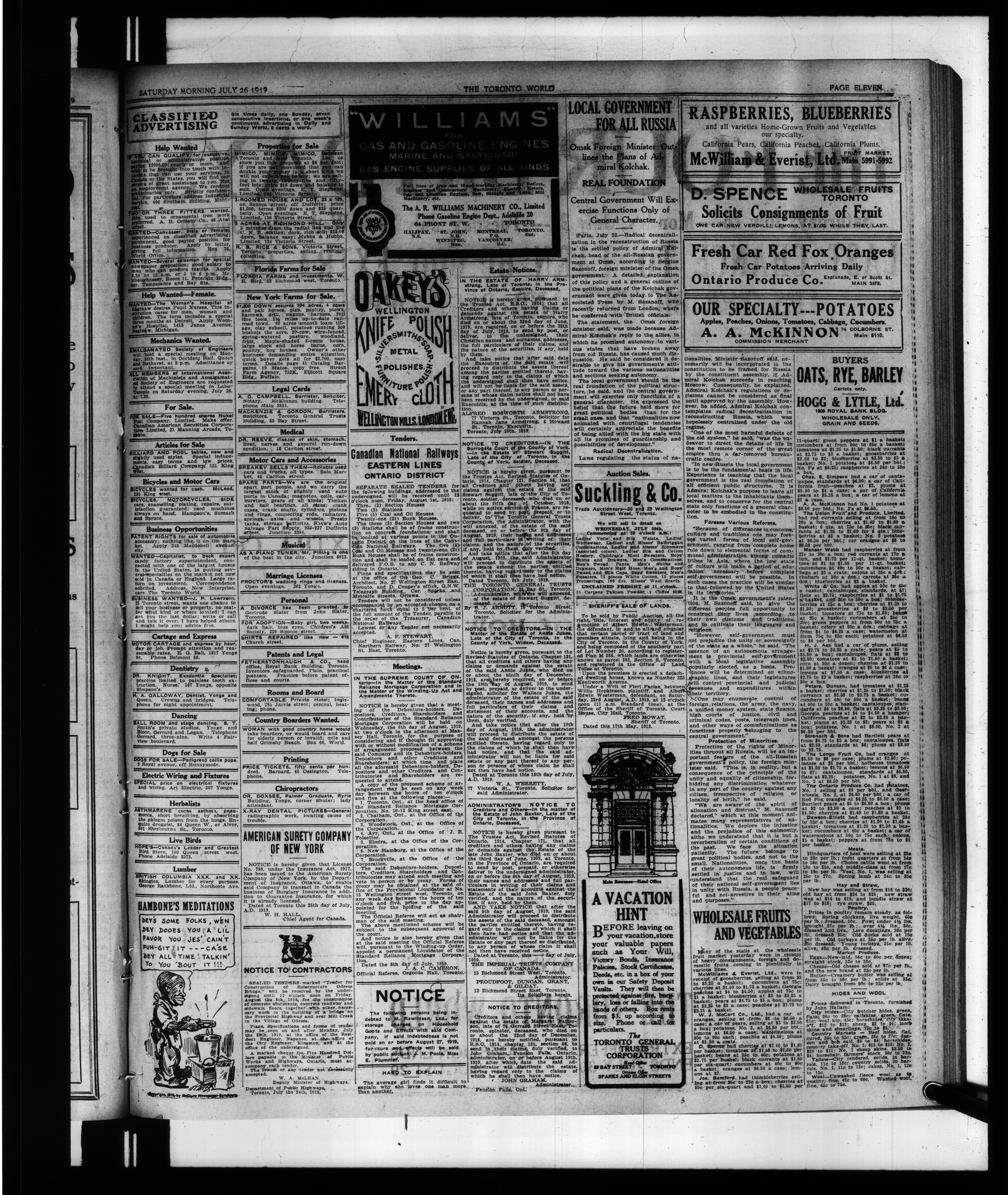 The Toronto world : Vol. XXXIX, No. 14,136 (July 26, 1919)