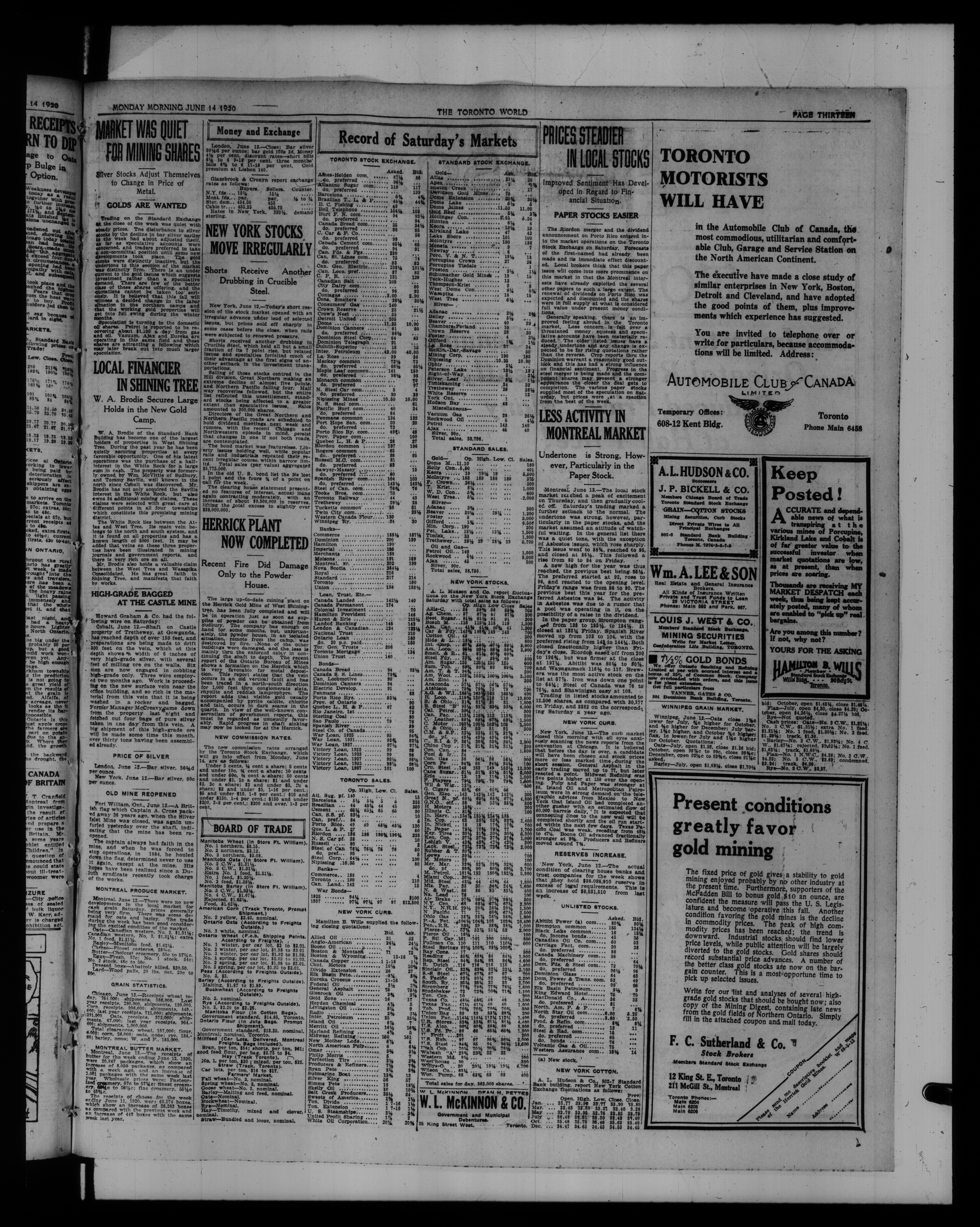 The Toronto world : 40th Year, No. 14,460 (June 14, 1920)