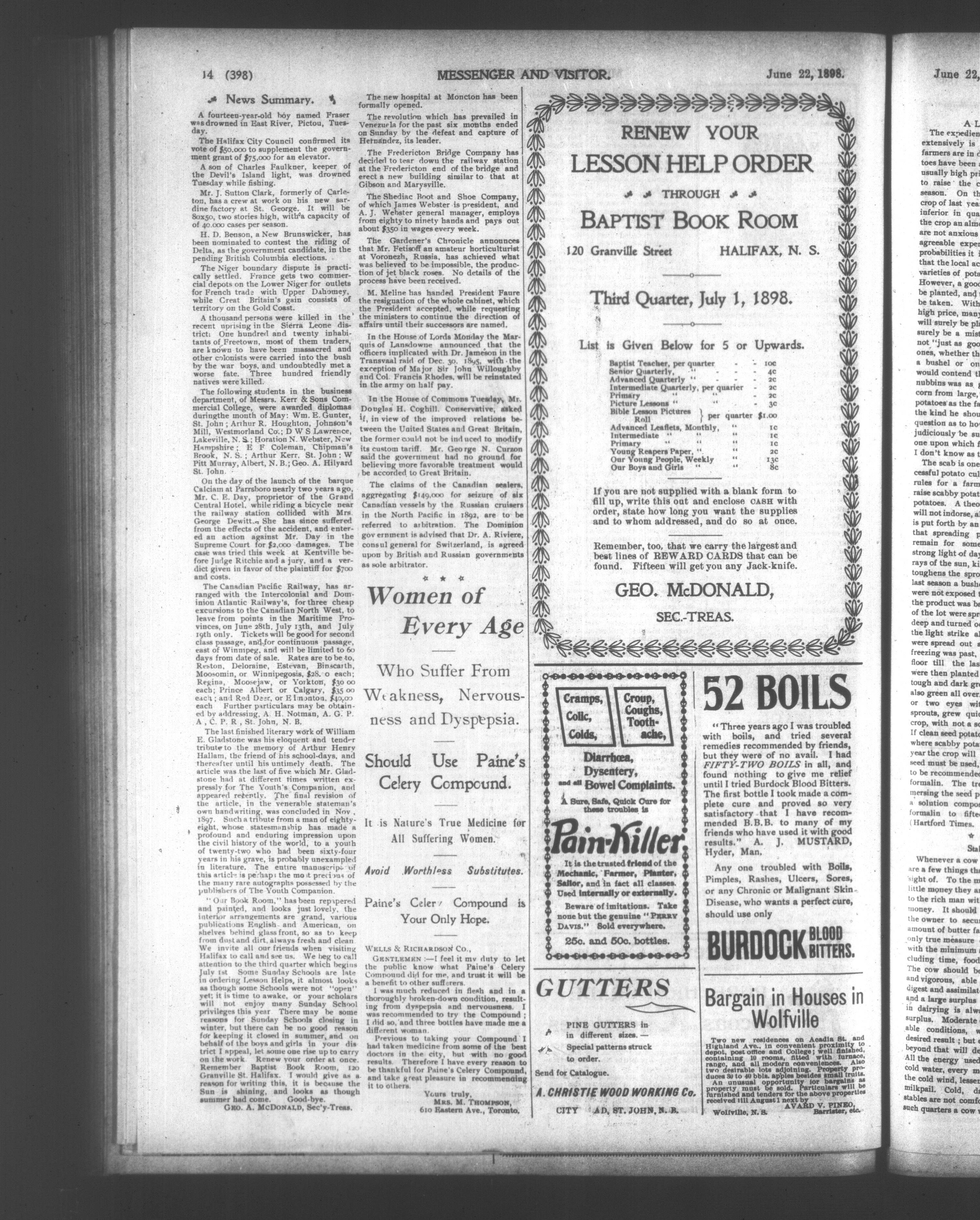 Messenger and Visitor : Vol. XIV, No. 25 (June 22, 1898)
