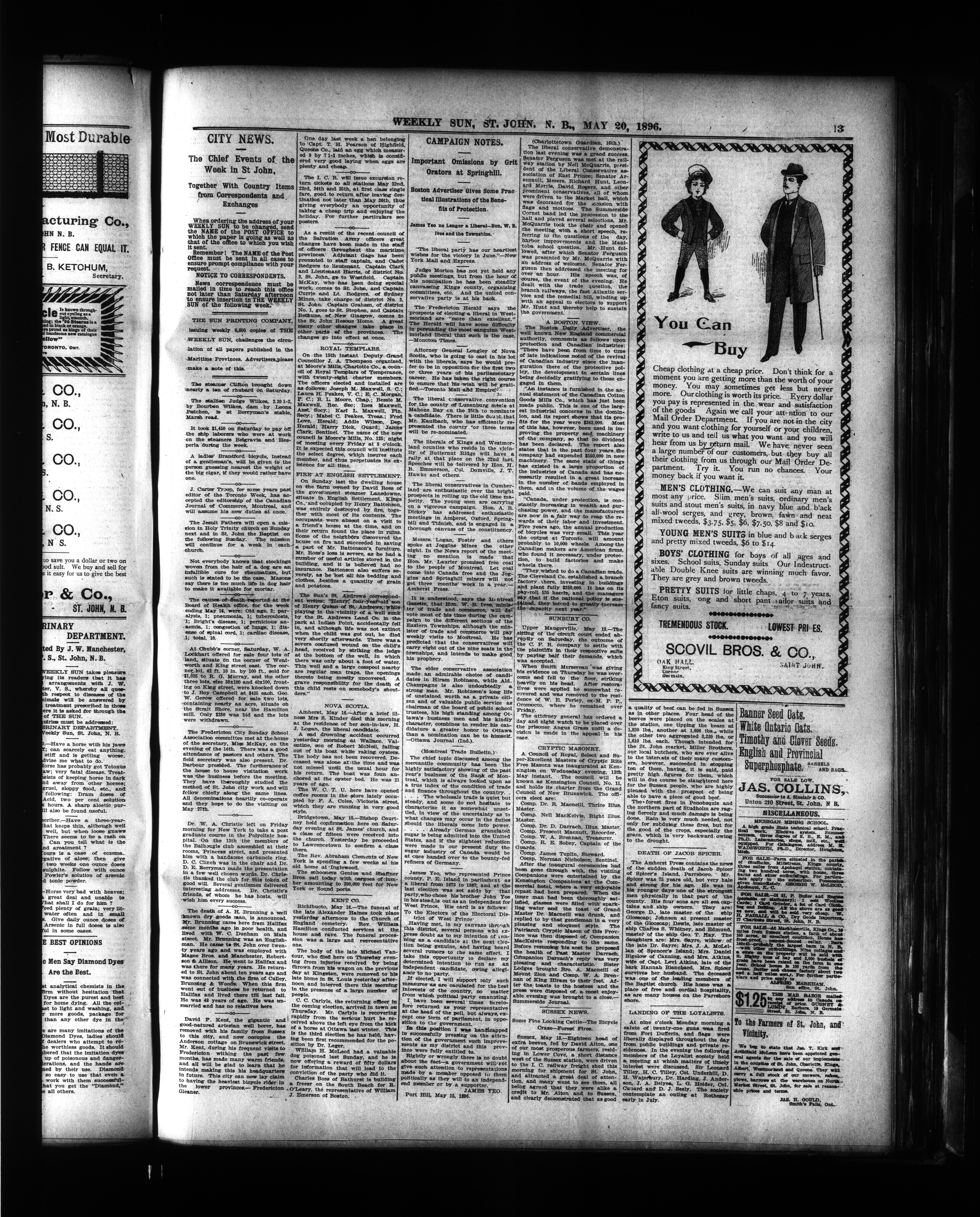 The St. John weekly sun : Vol. 19, No. 21 (May 20, 1896)