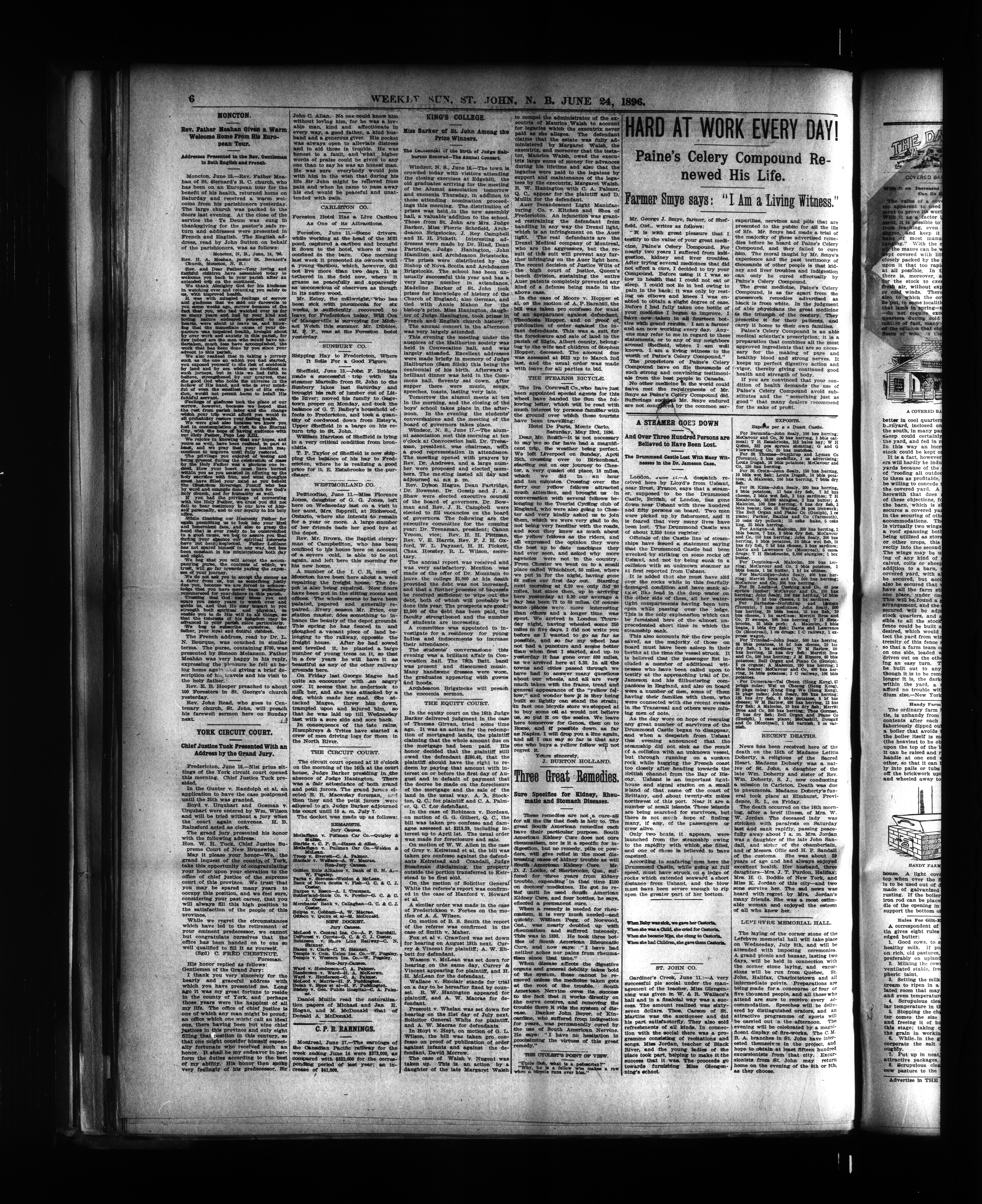 The St. John weekly sun : Vol. 19, No. 26 (June 24, 1896)