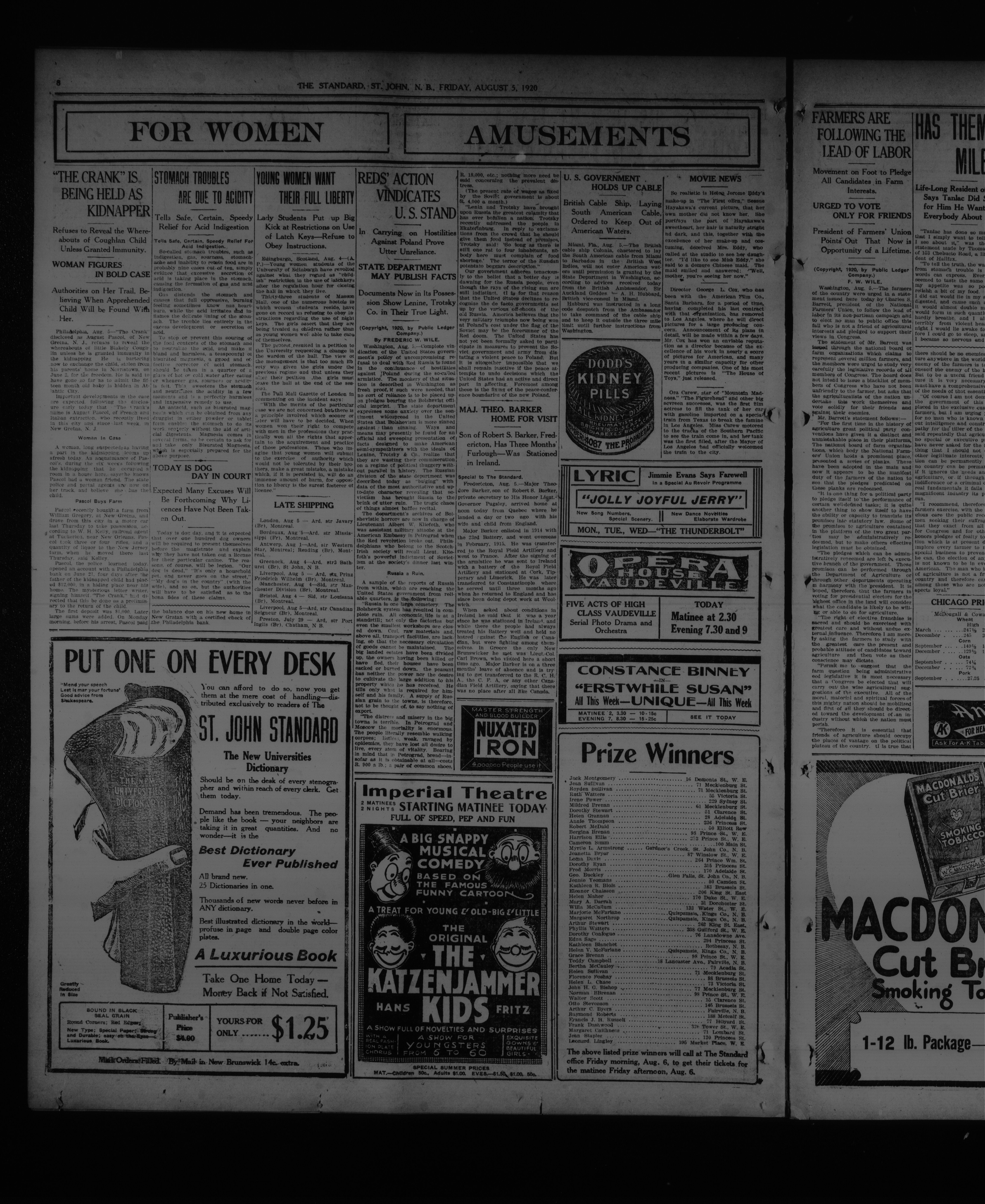 The Saint John standard : Vol. XII, No. 115 (August 6, 1920)