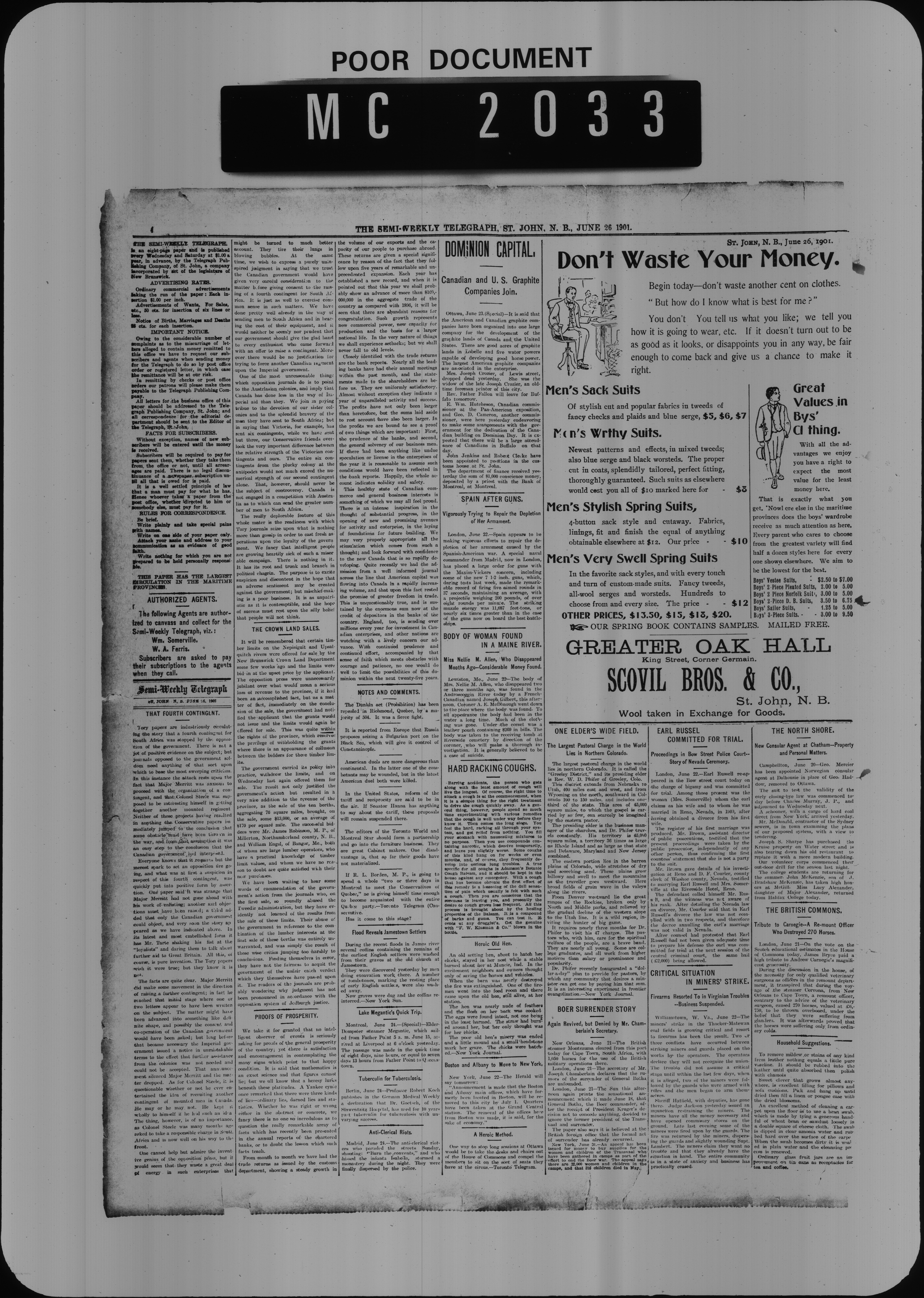 St. John, N.B.: The Telegraph Publishing Company, [1901]; 8 images avec recherche en texte intégral