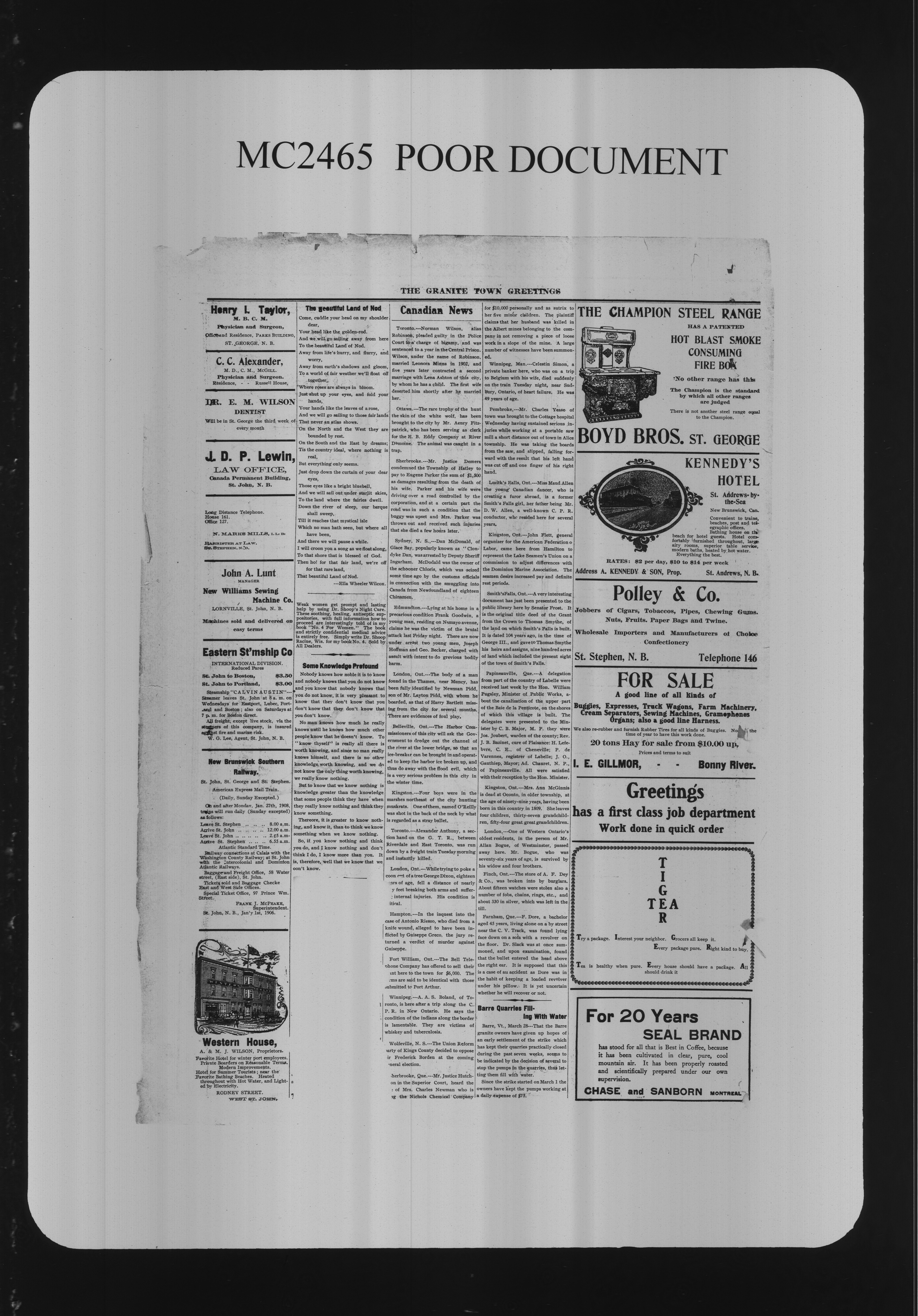 St. George, N.B. : Greetings Publishing Company, Ltd.; 8 images avec recherche en texte intégral
