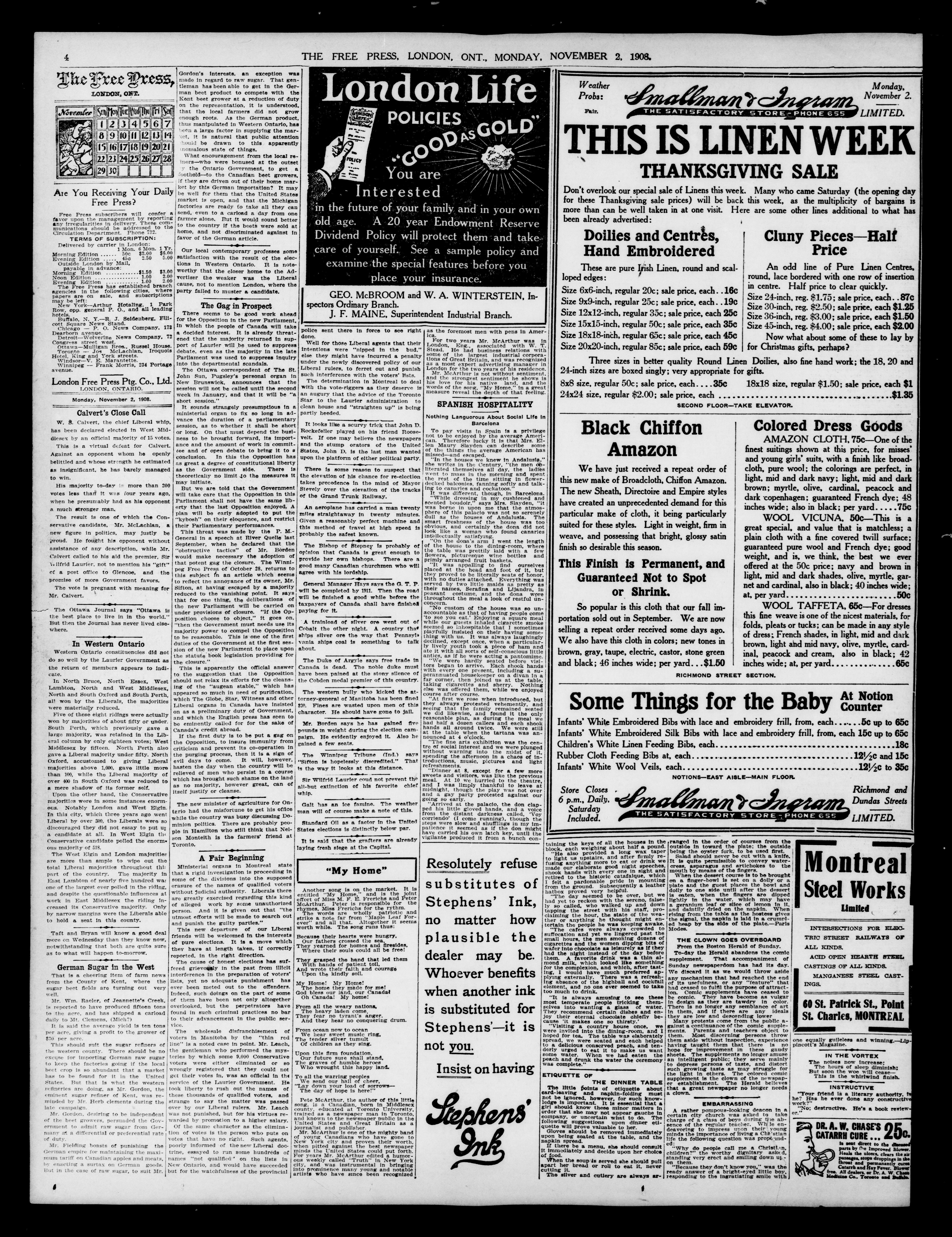 The Evening Free Press : November 2, 1908-December 31, 1908