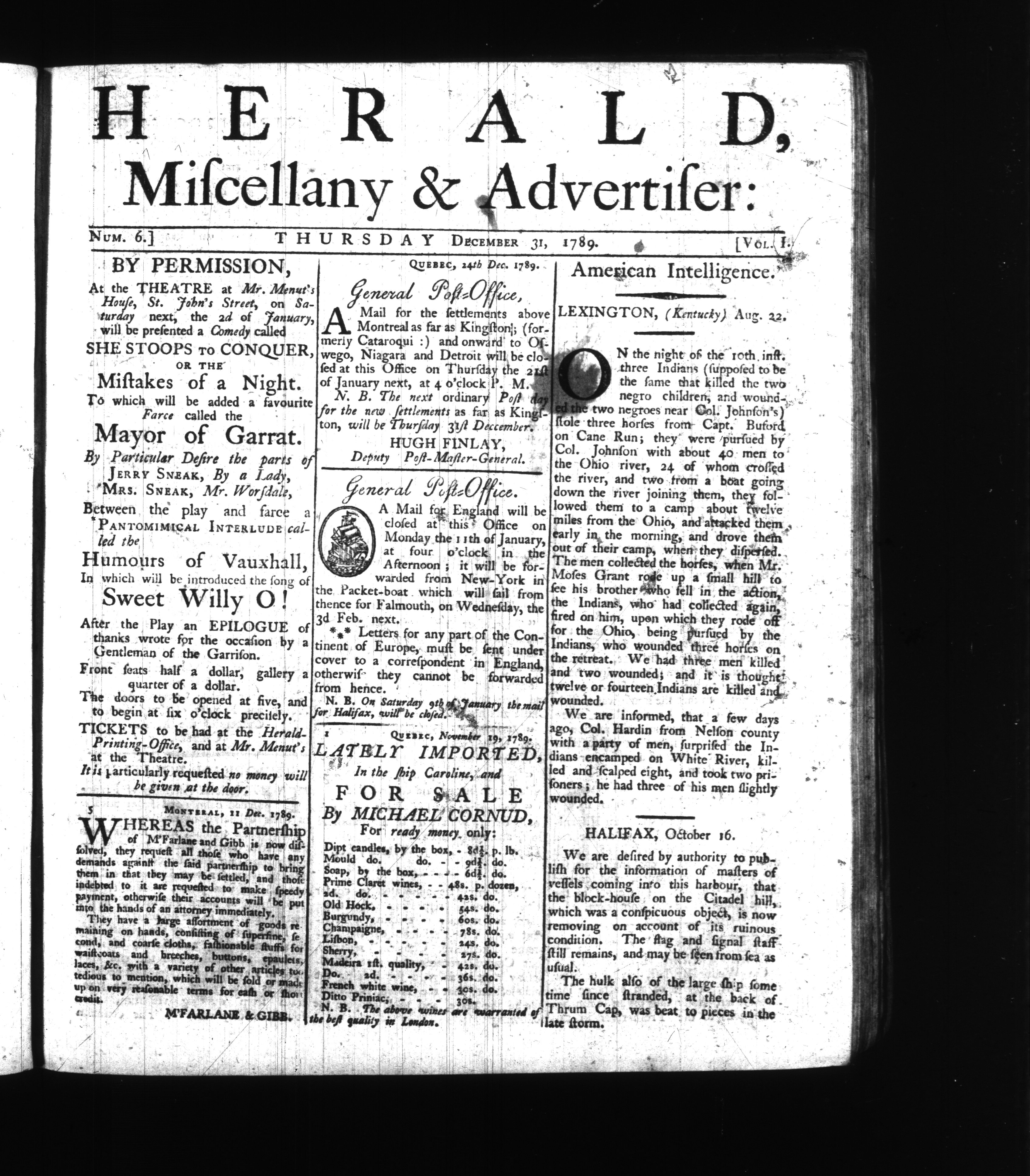 Herald, Miscellany & Advertiser : November 26, 1789-May 19, 1791