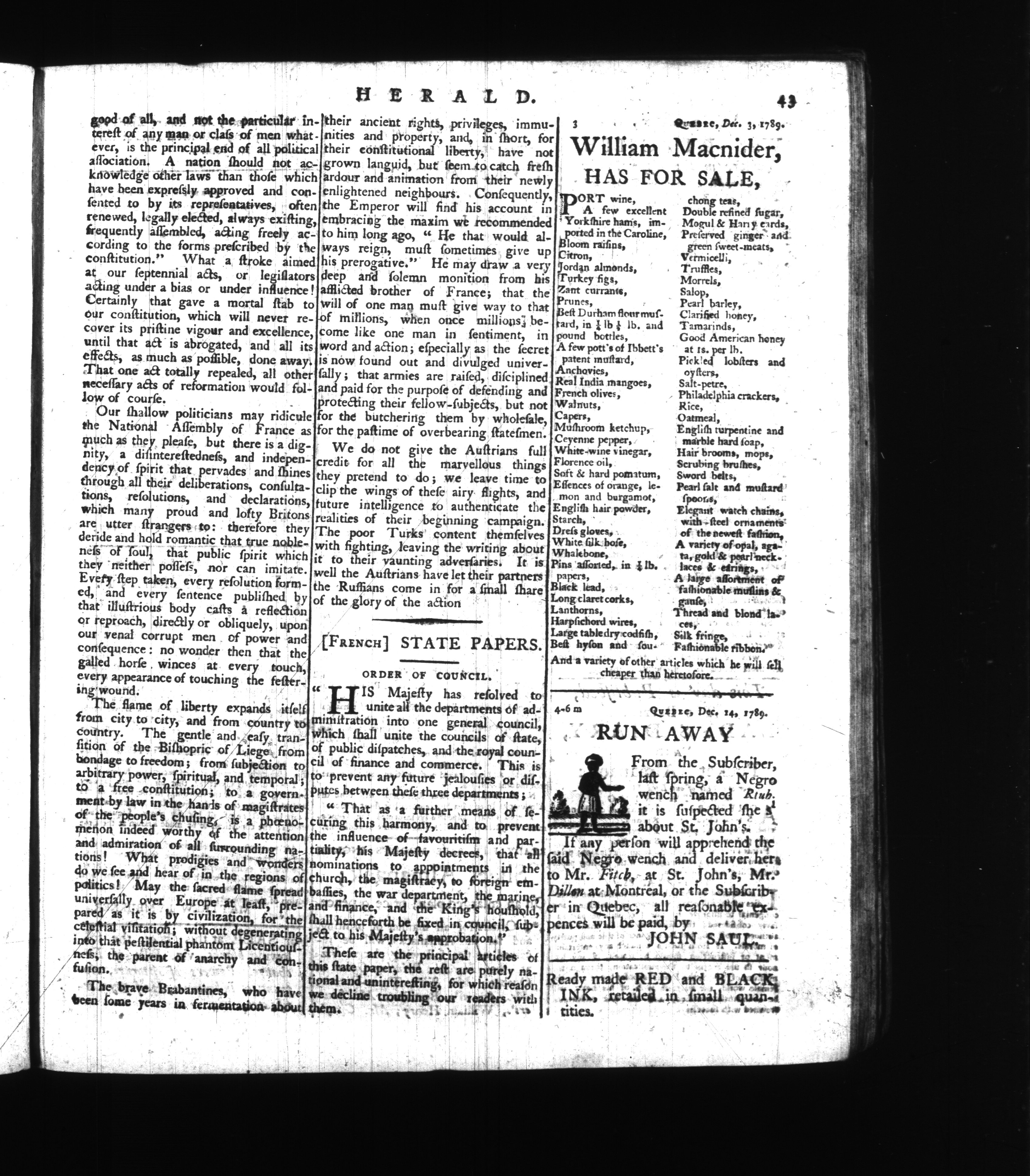 Herald, Miscellany & Advertiser : November 26, 1789-May 19, 1791
