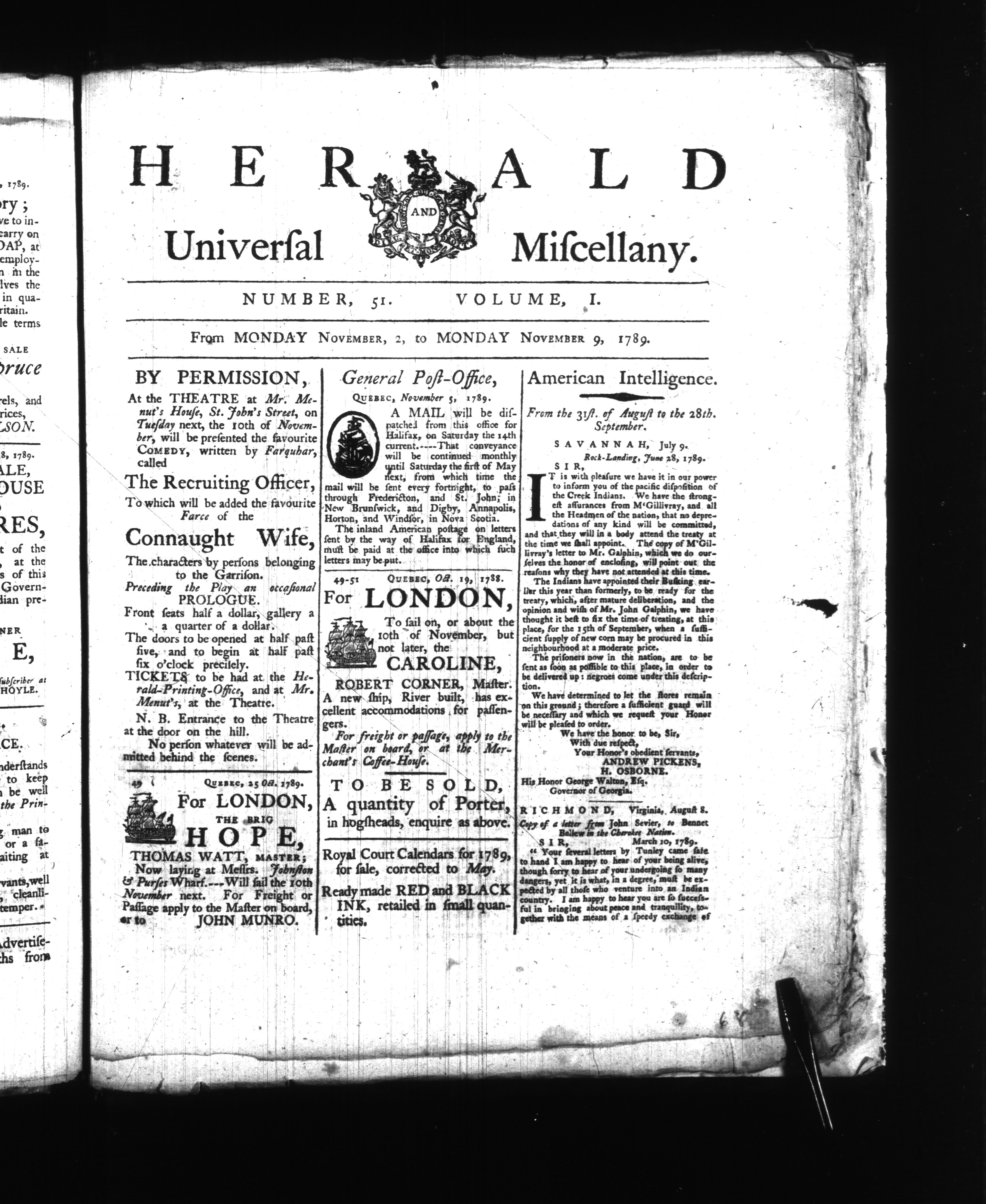 Herald and Universal Miscellany : November 24 to December 1, 1788-November 9 to November 16, 1789