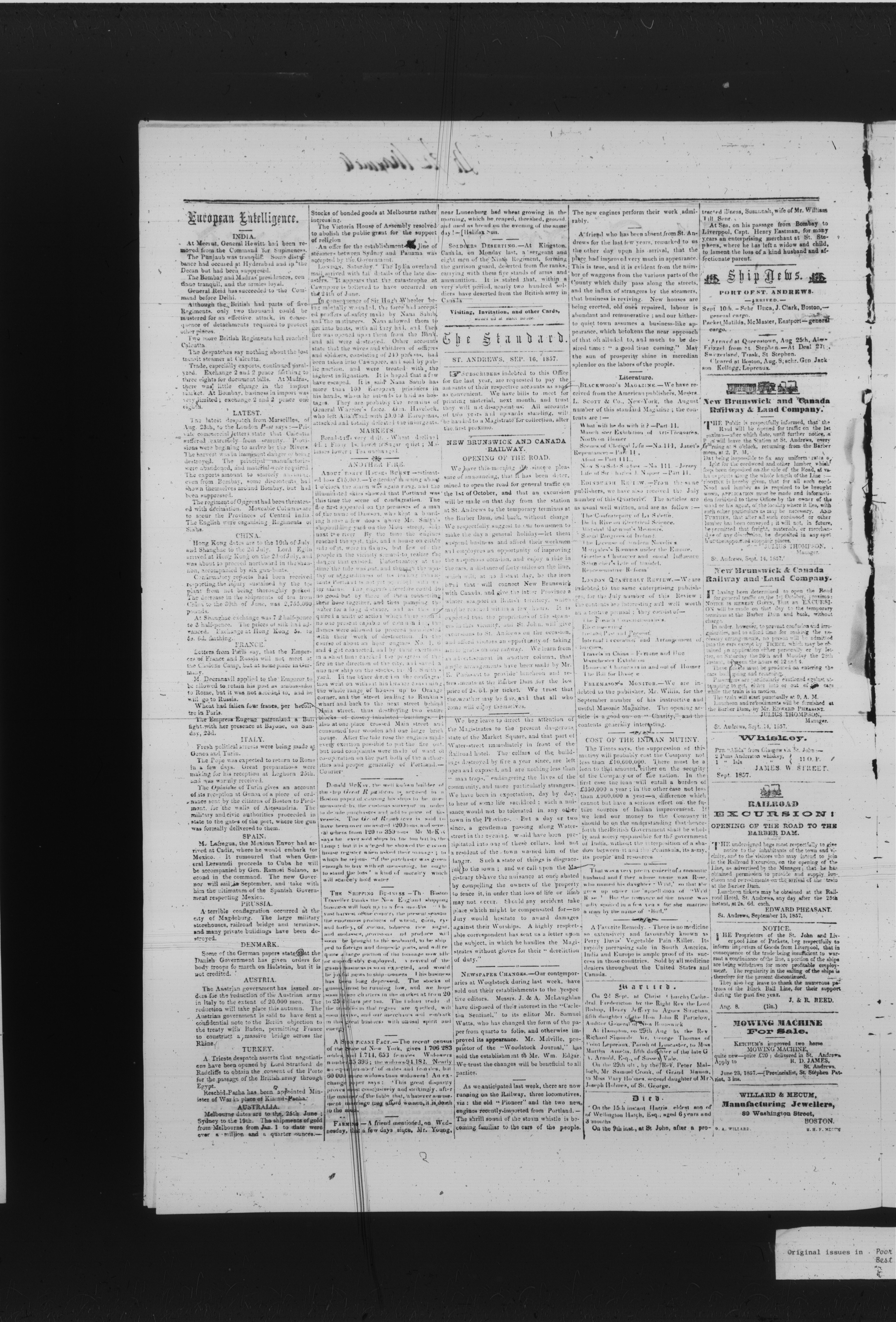 - The St. Andrews Standard : Vol. 24, No. 37 (September 16, 1857)