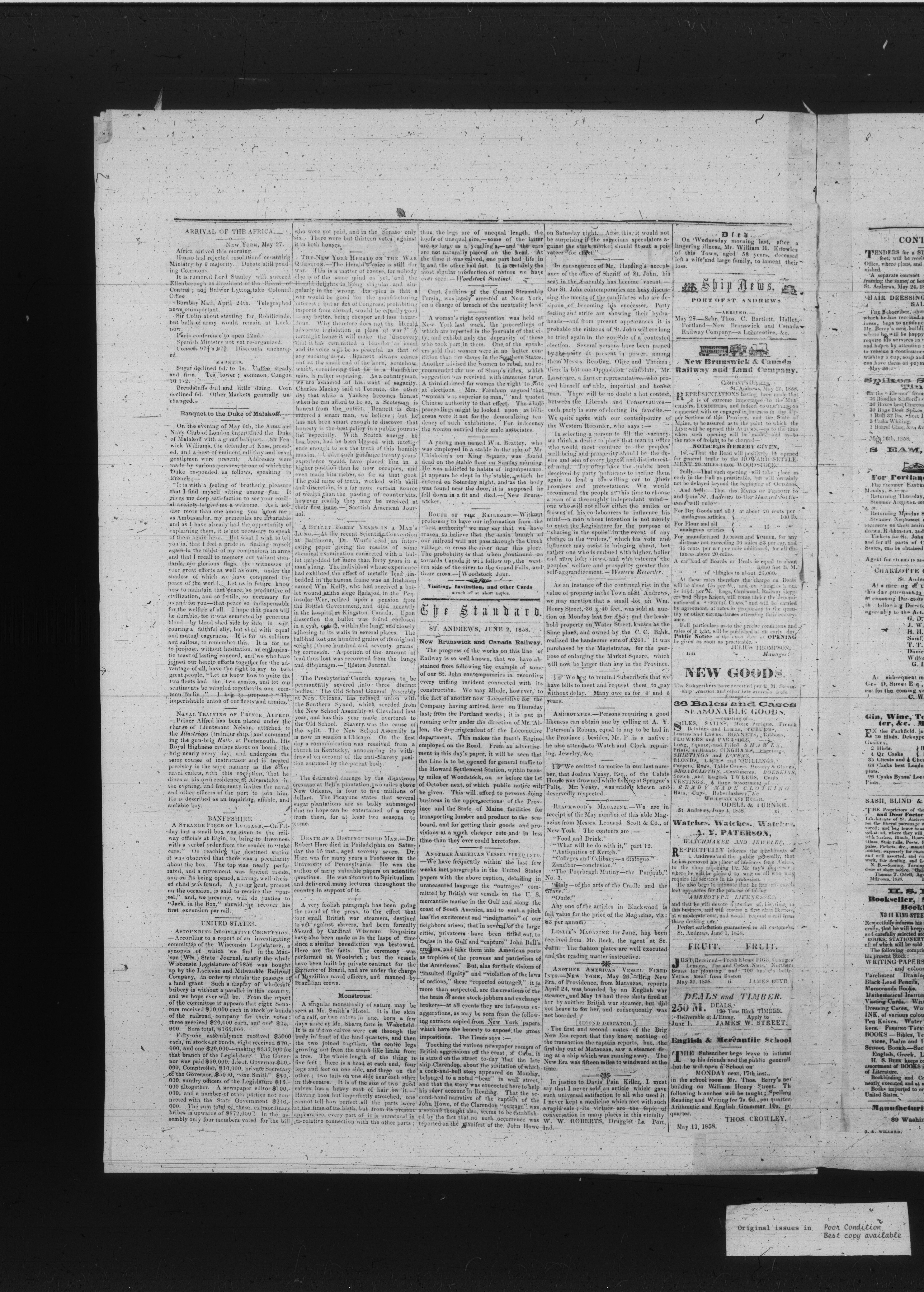 - The St. Andrews Standard : Vol. 25, no. 22 (June 2, 1858)