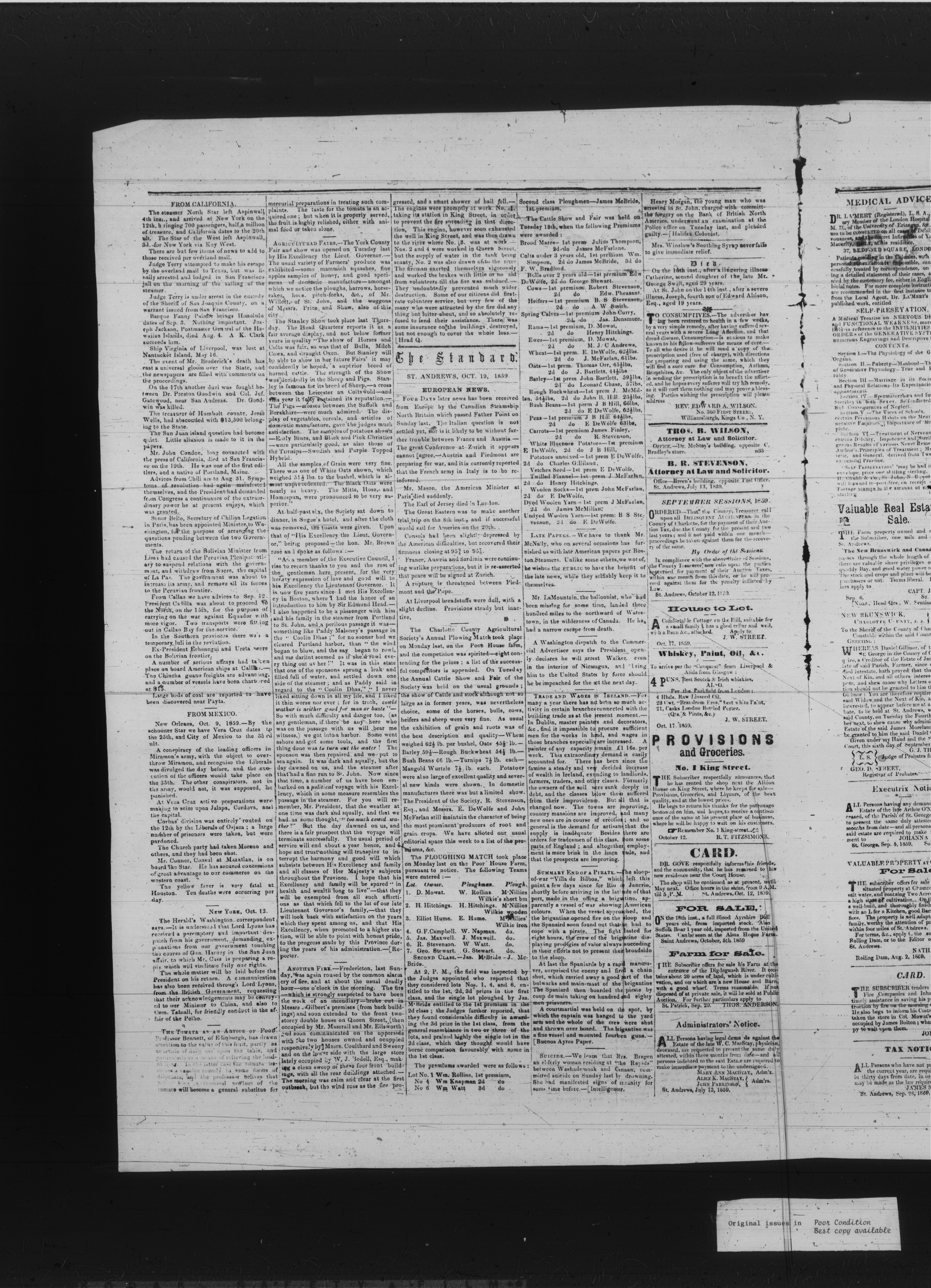 - The St. Andrews Standard : Vol. 26, no. 42 (October 19, 1859)