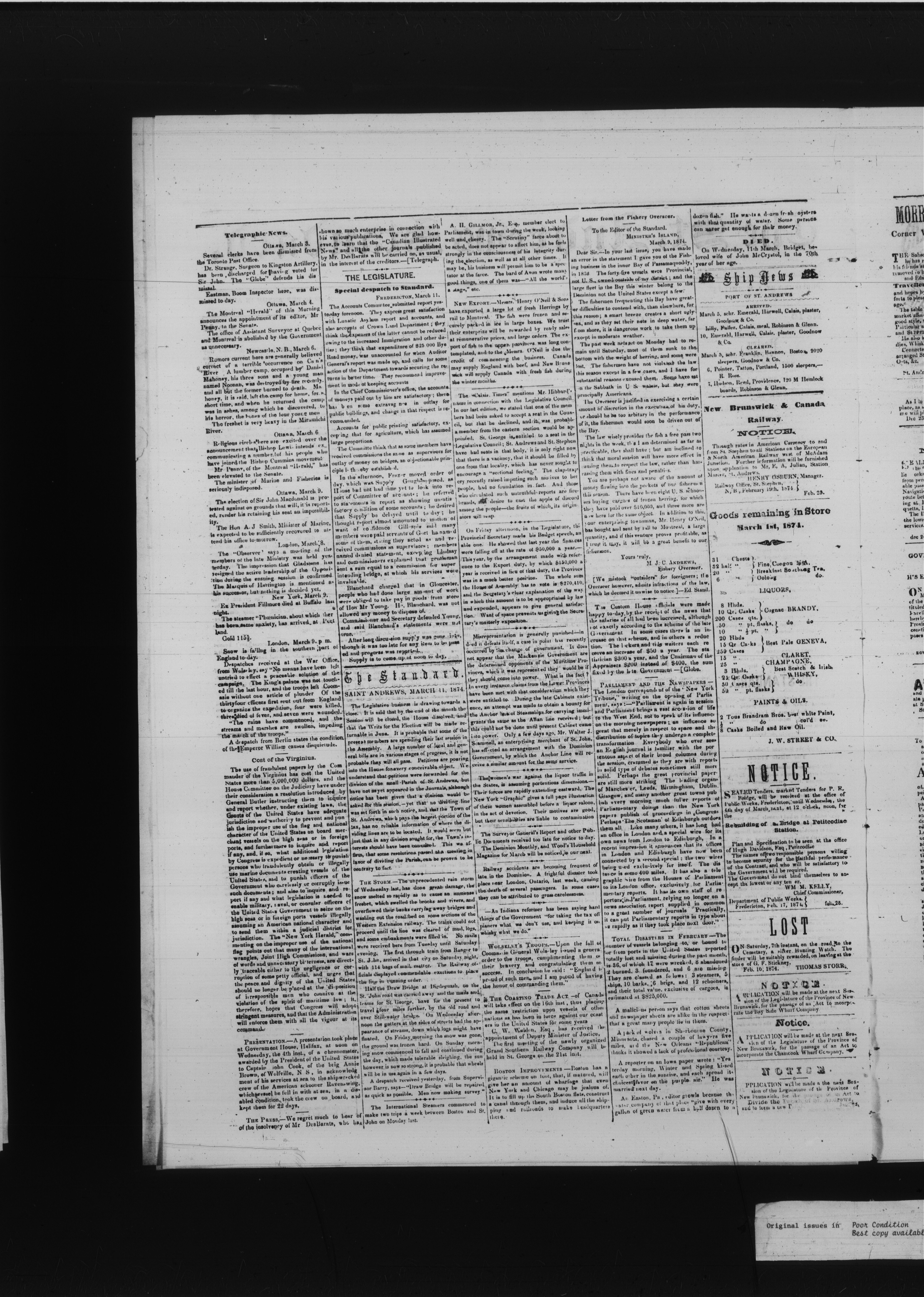 - The St. Andrews Standard : Vol. 41, No. 10 (March 11, 1874)