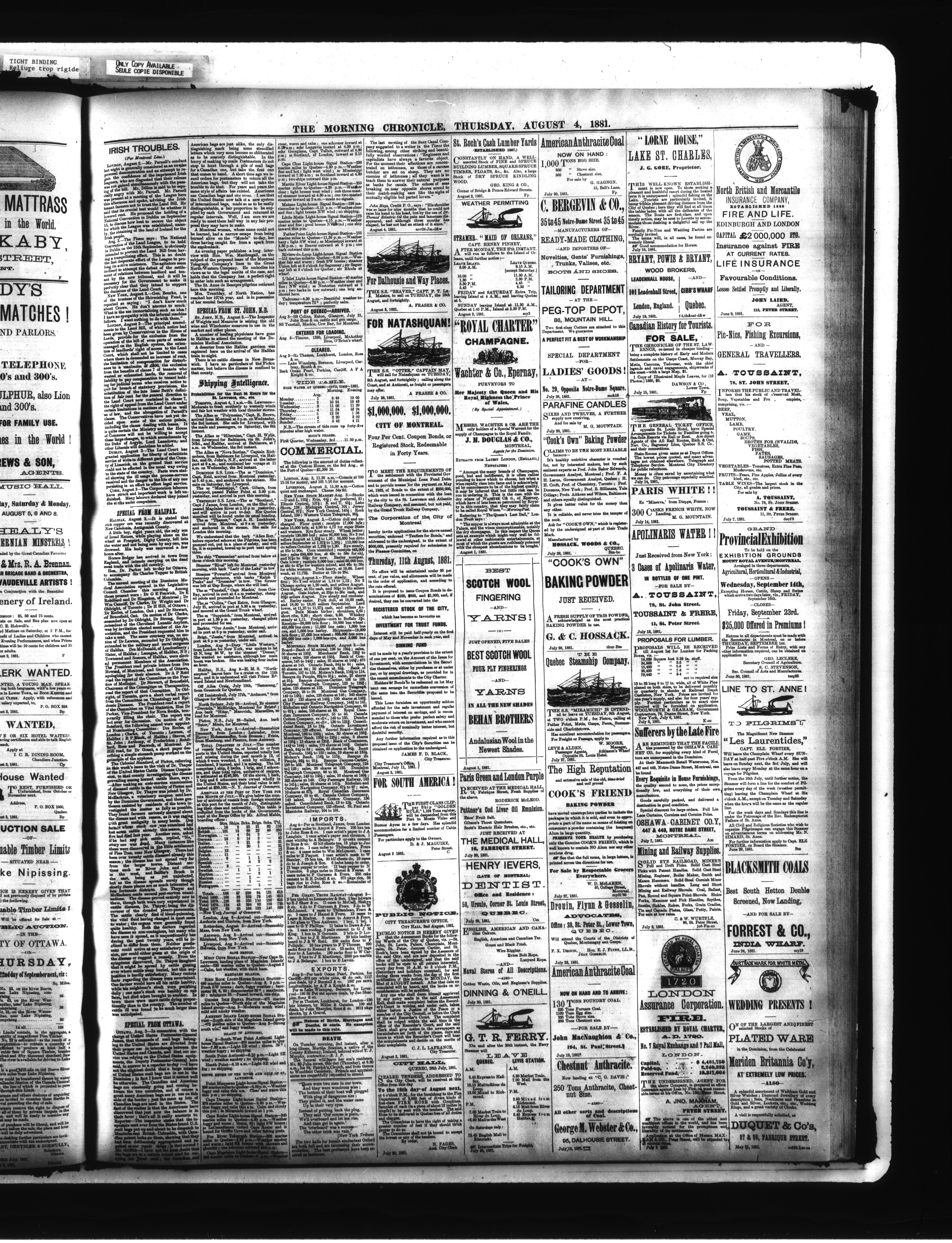Morning chronicle, commercial and shipping gazette : July 1, 1881-December 31, 1881