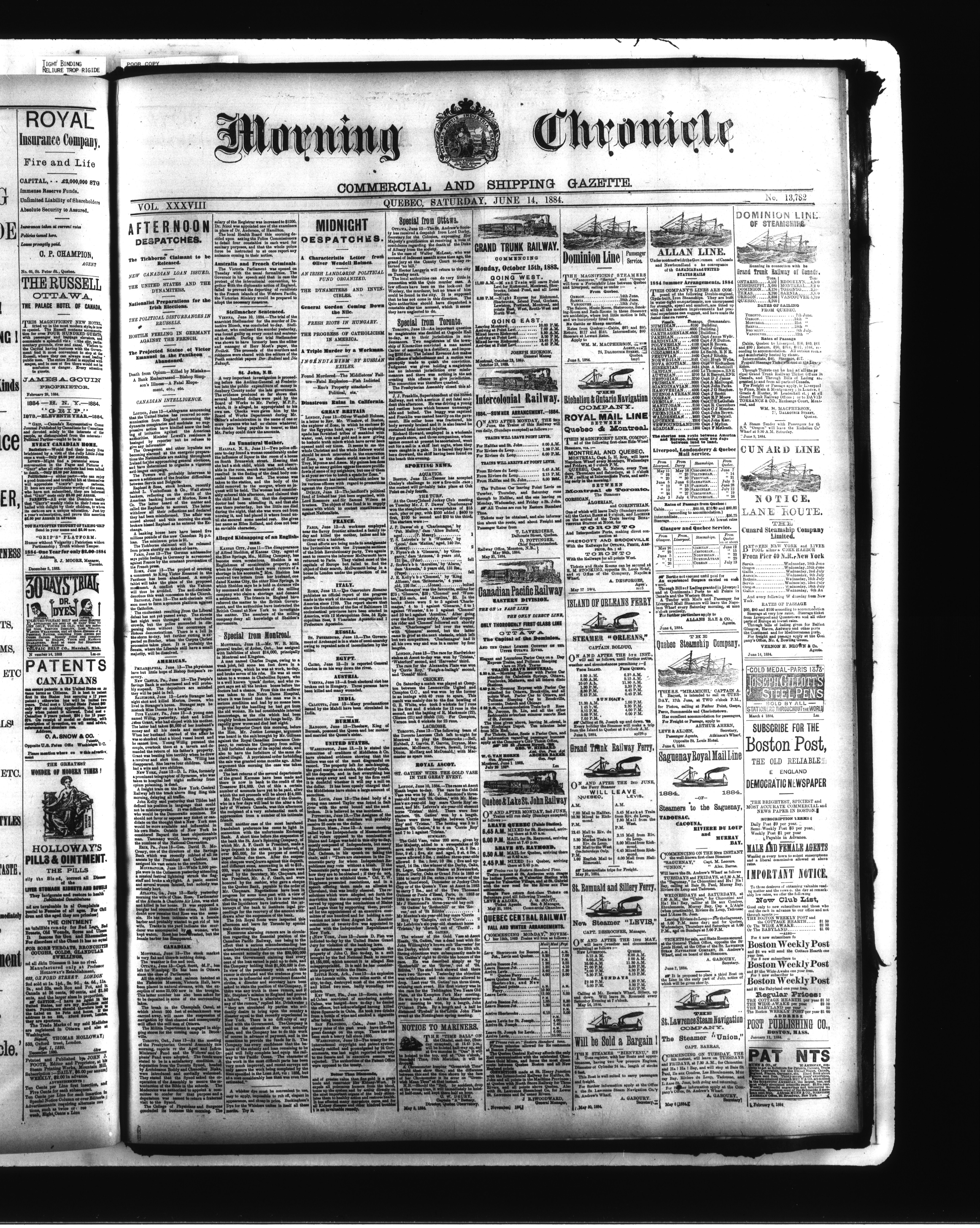 Morning chronicle, commercial and shipping gazette : January 1, 1884-June 30, 1884