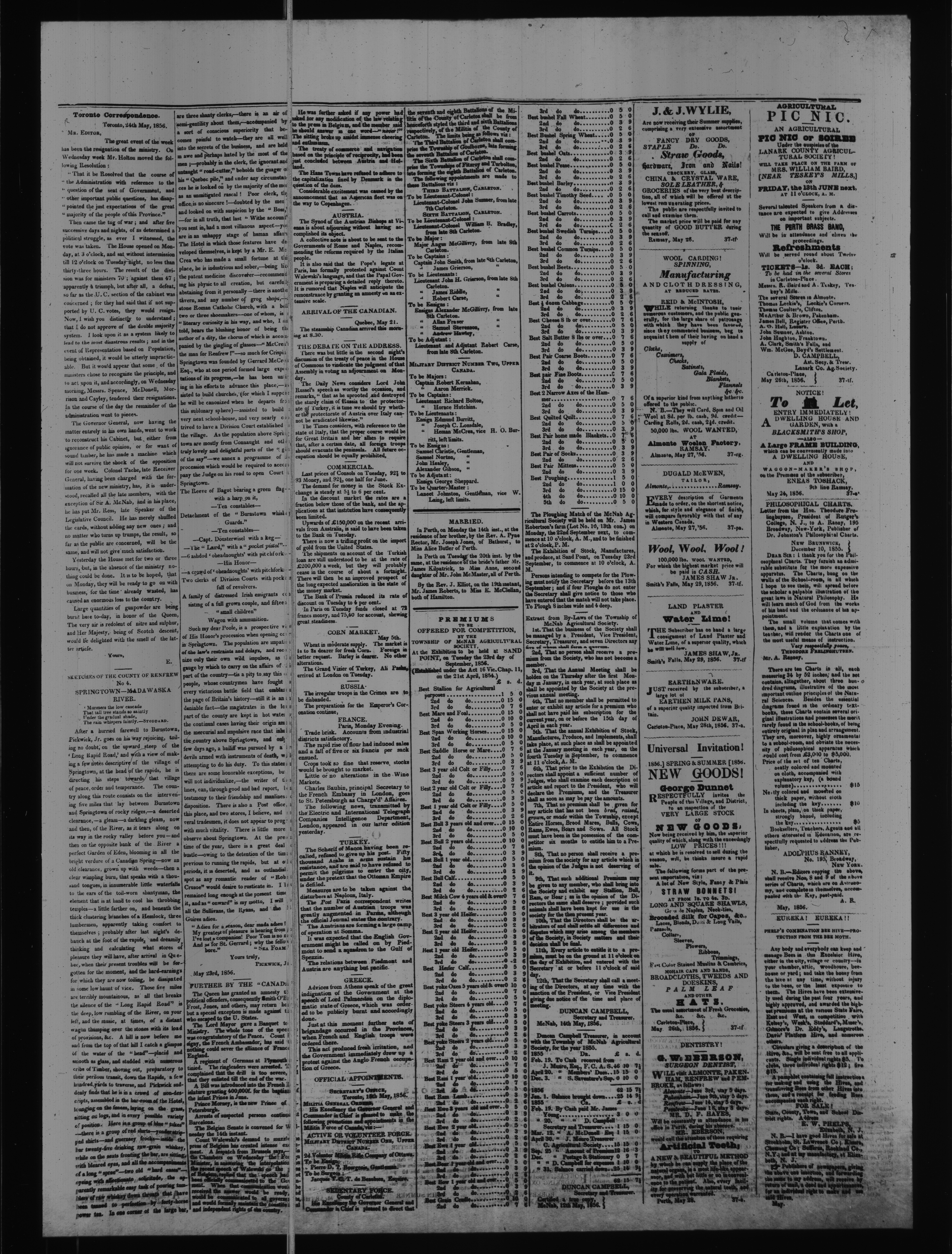 Carleton-Place, Canada West : Published ... by James Poole, Editor and Proprietor, [1856]; 4 images avec recherche en texte intégral