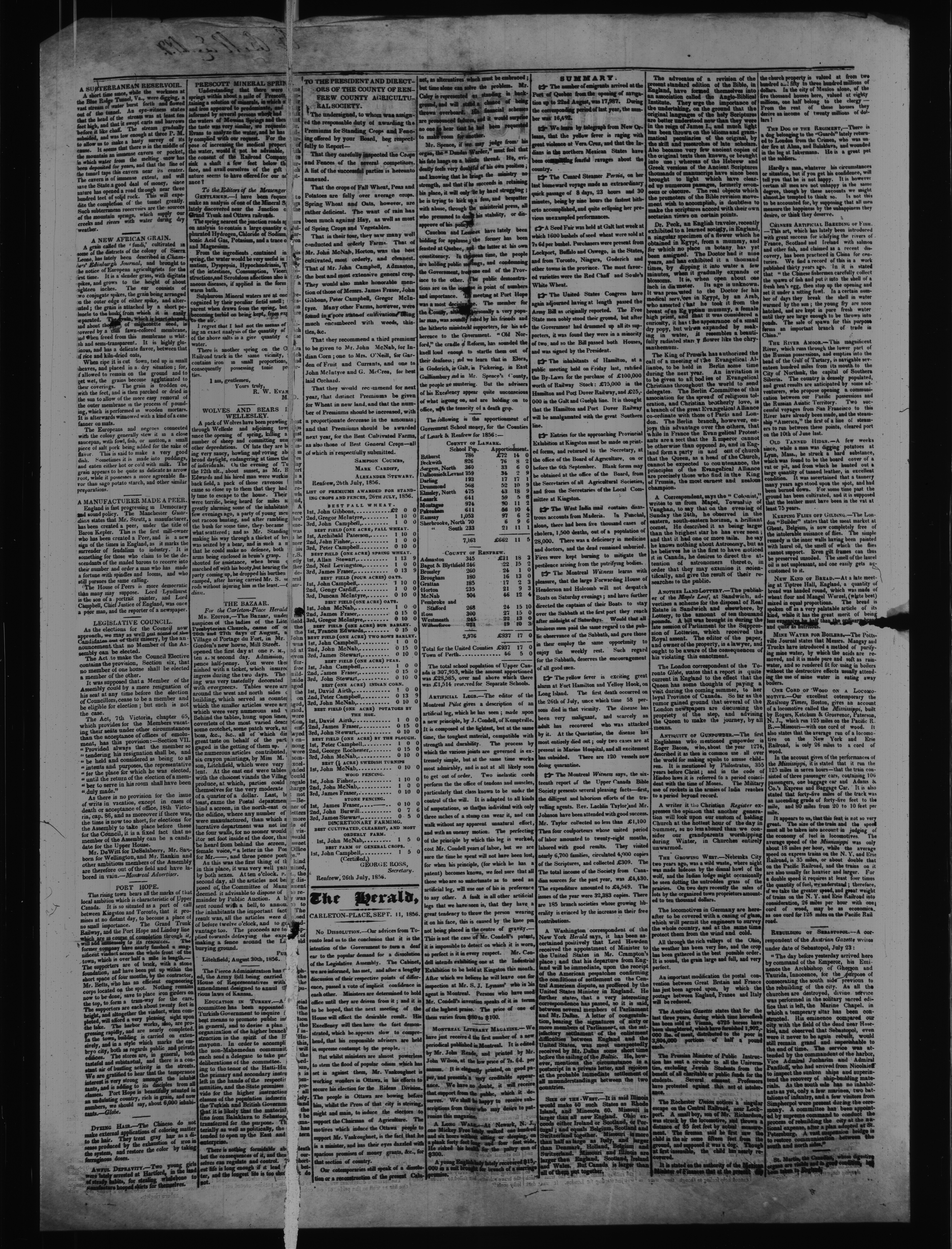 - The Carleton-Place herald : Vol. VI, No. 52 (September 11, 1856)