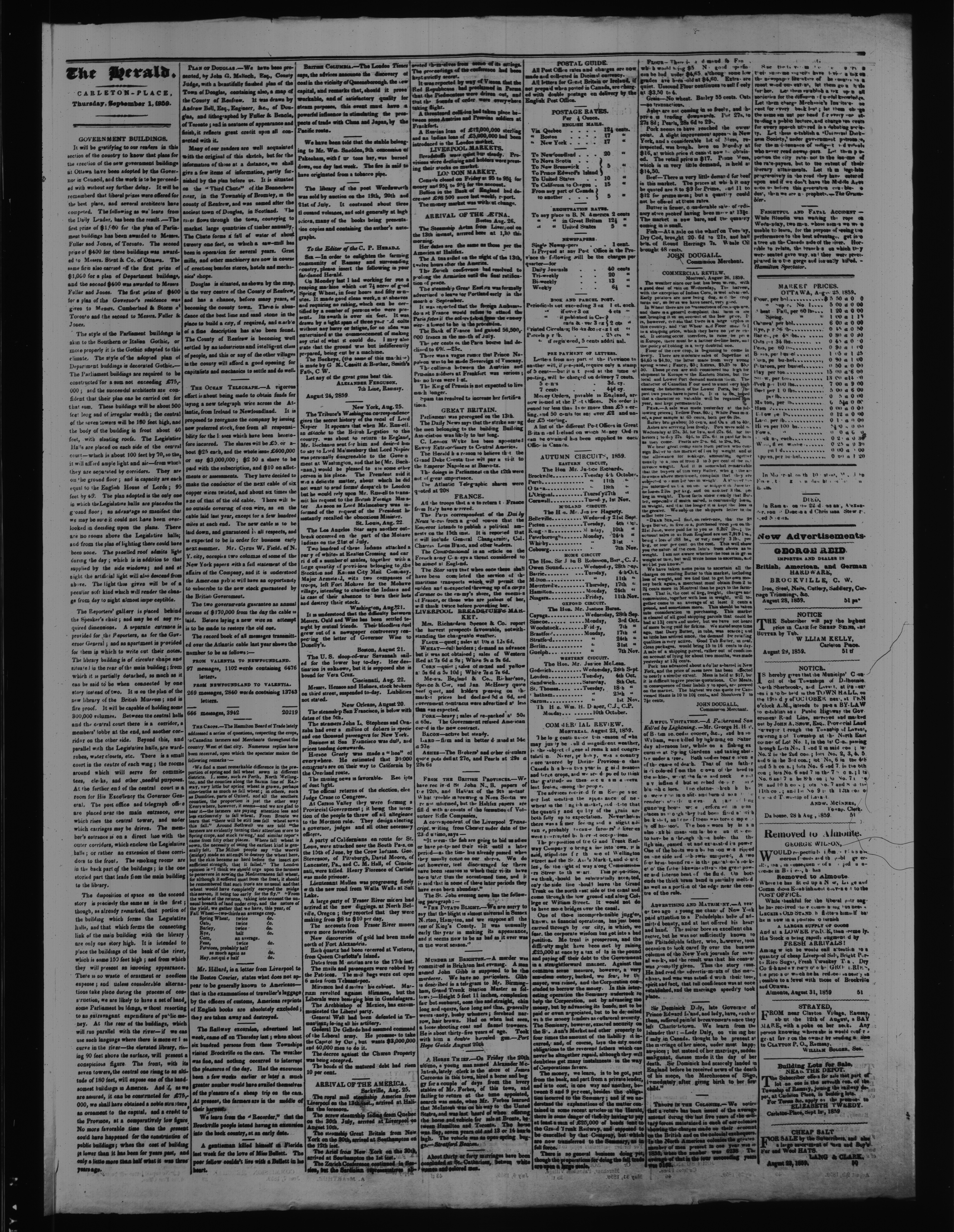 - The Carleton Place herald : Vol. IX, No. 51 (September 1, 1859)