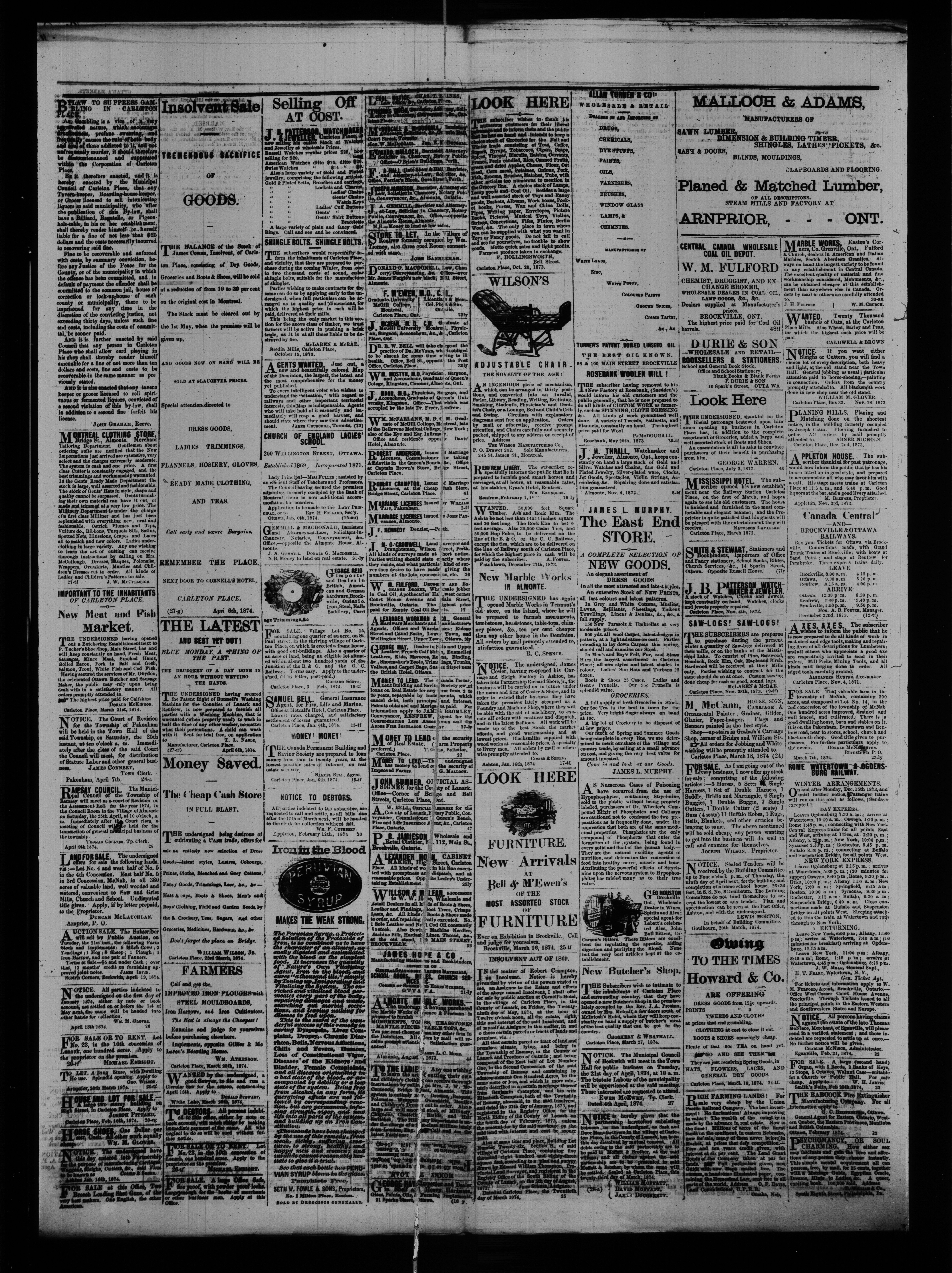 Aide Carleton Place, Ontario : James Poole, Editor and Proprietor, [1874]; 4 images avec recherche en texte intégral