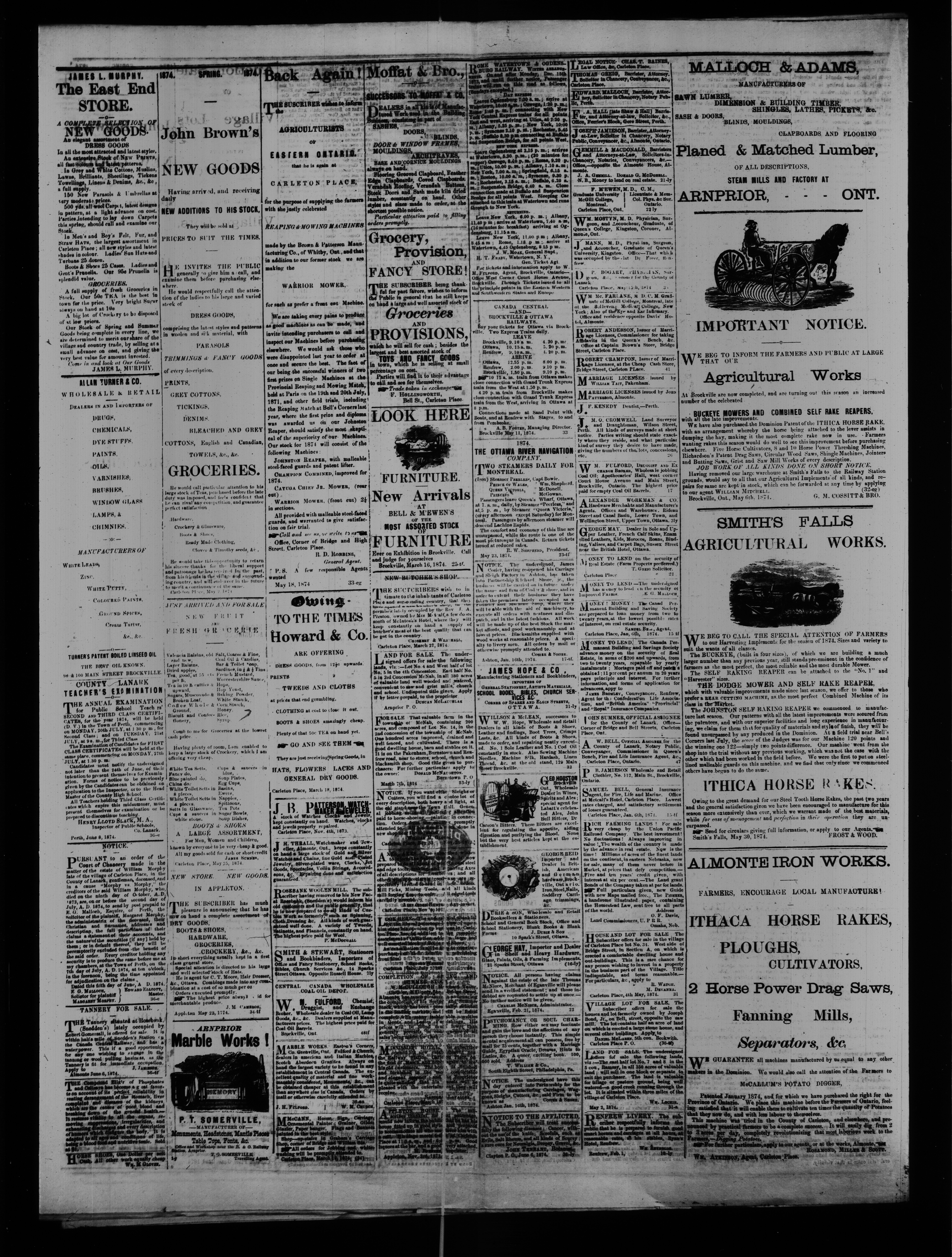 Carleton Place, Ontario : James Poole, Editor and Proprietor, [1874]; 4 images avec recherche en texte intégral