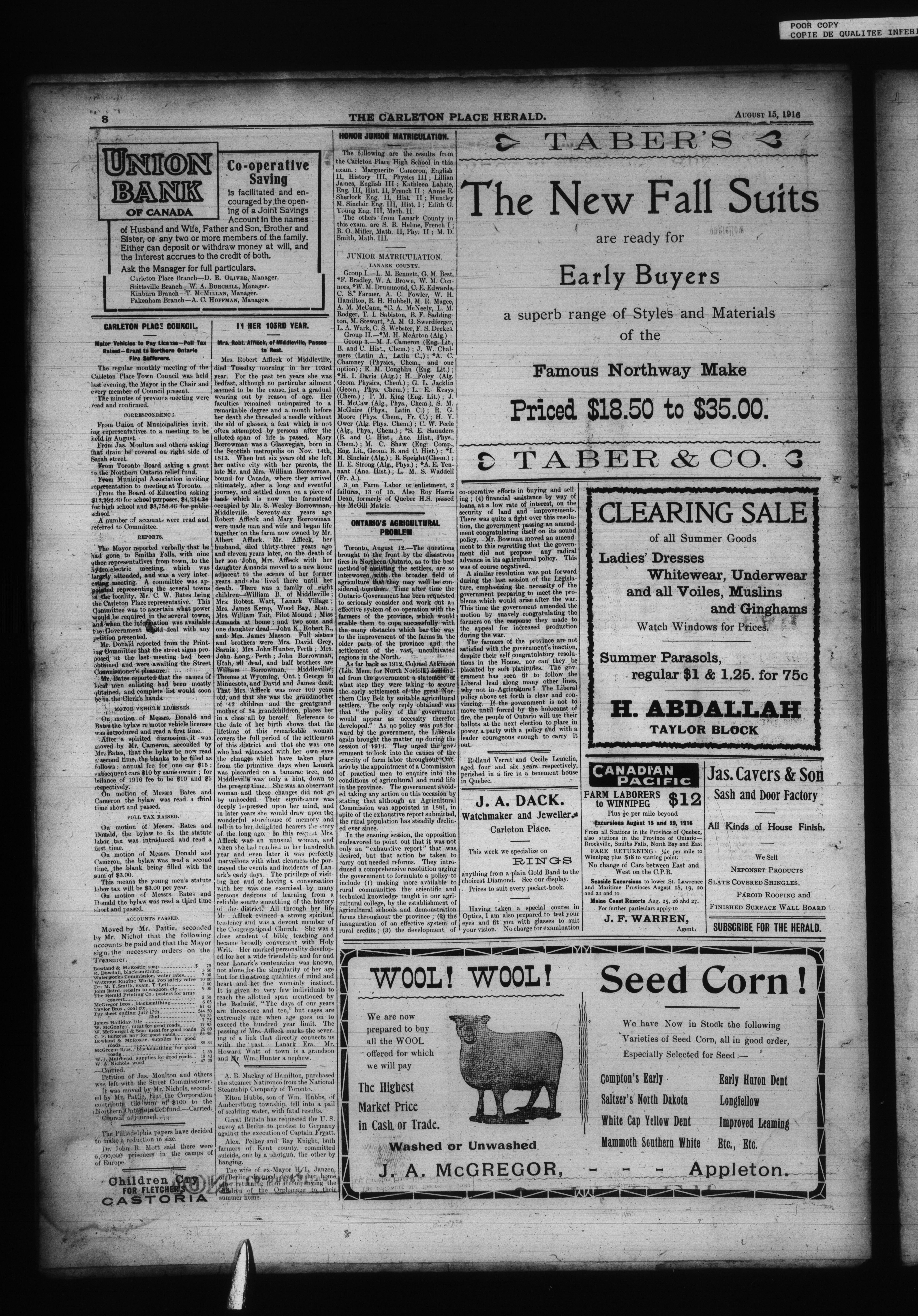 The Carleton-Place herald. : The Carleton Place herald : Vol. LXVII, No. 9 (August 15, 1916)