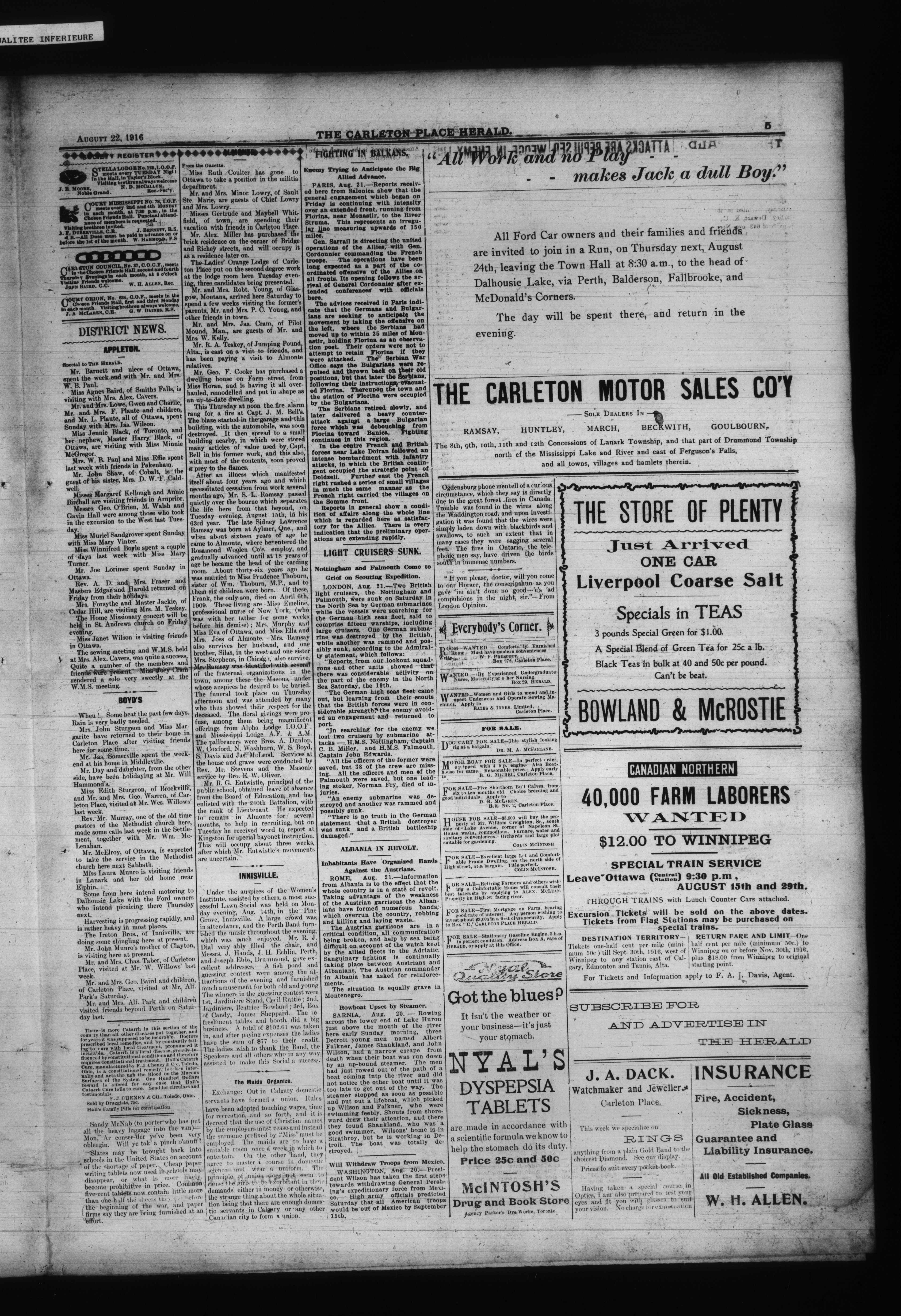 - The Carleton Place herald : Vol. LXVII, No. 10 (August 22, 1916)
