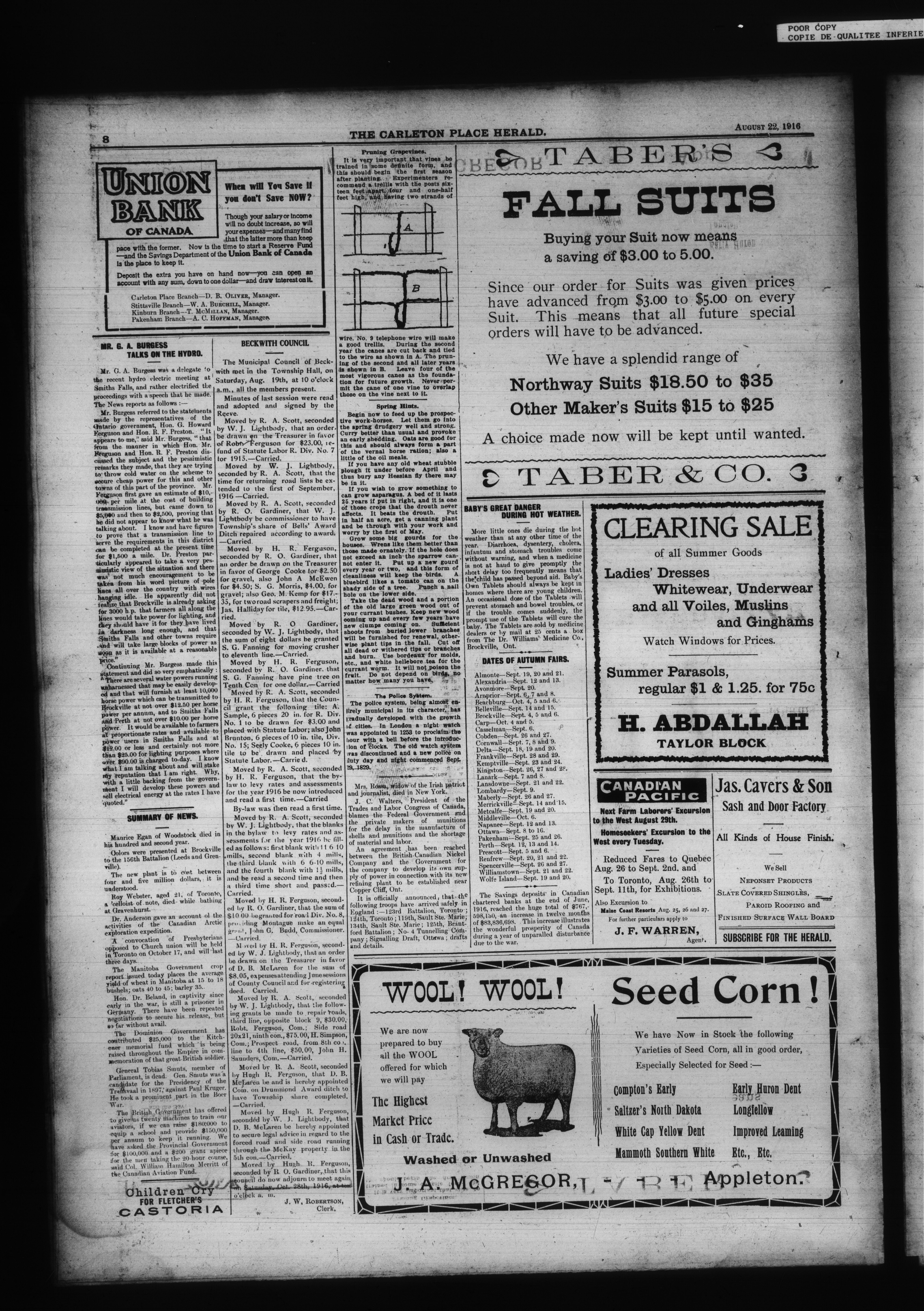 - The Carleton Place herald : Vol. LXVII, No. 10 (August 22, 1916)