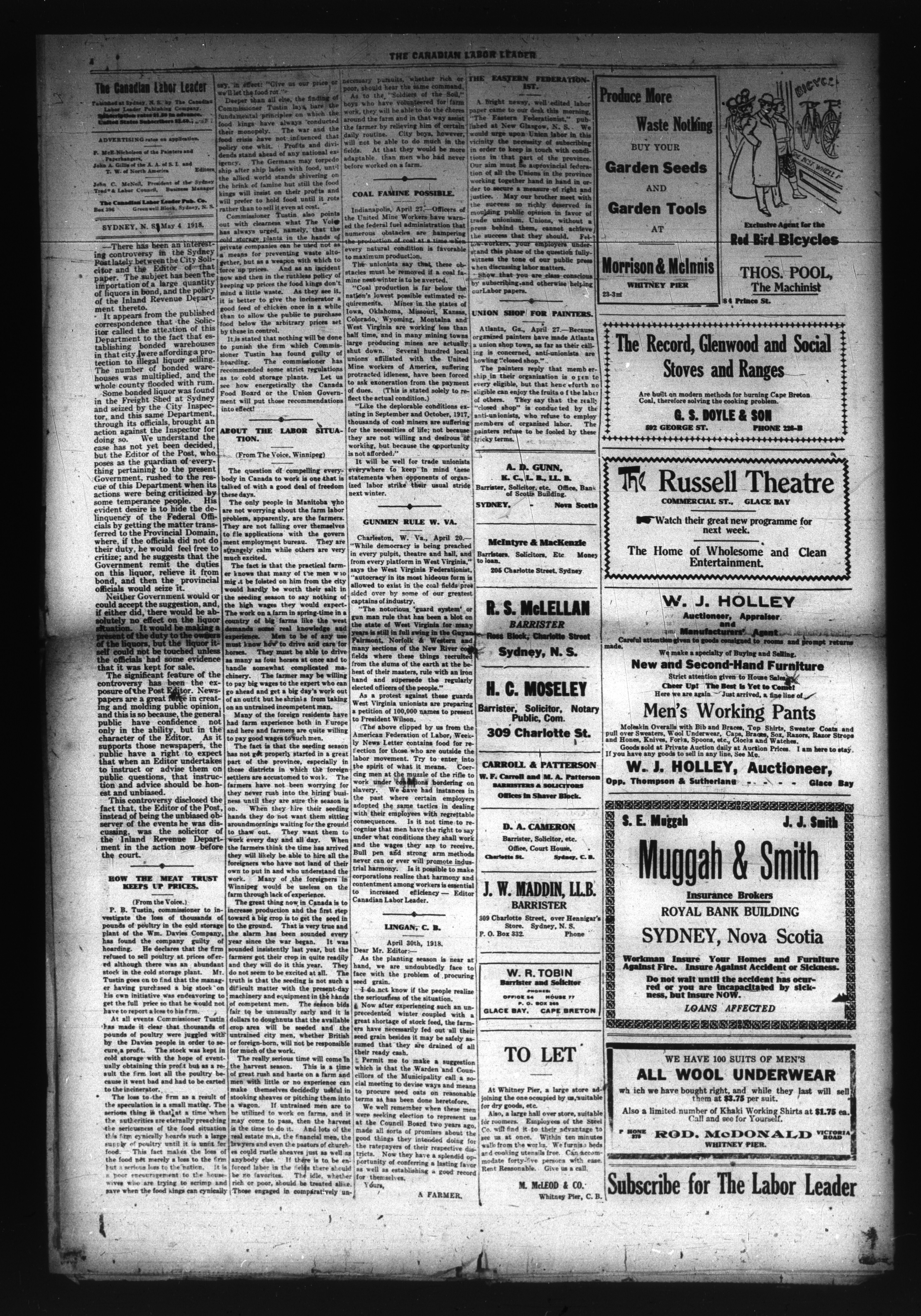 Canadian labor leader : Oct. 26, 1912-Nov. 2, 1918