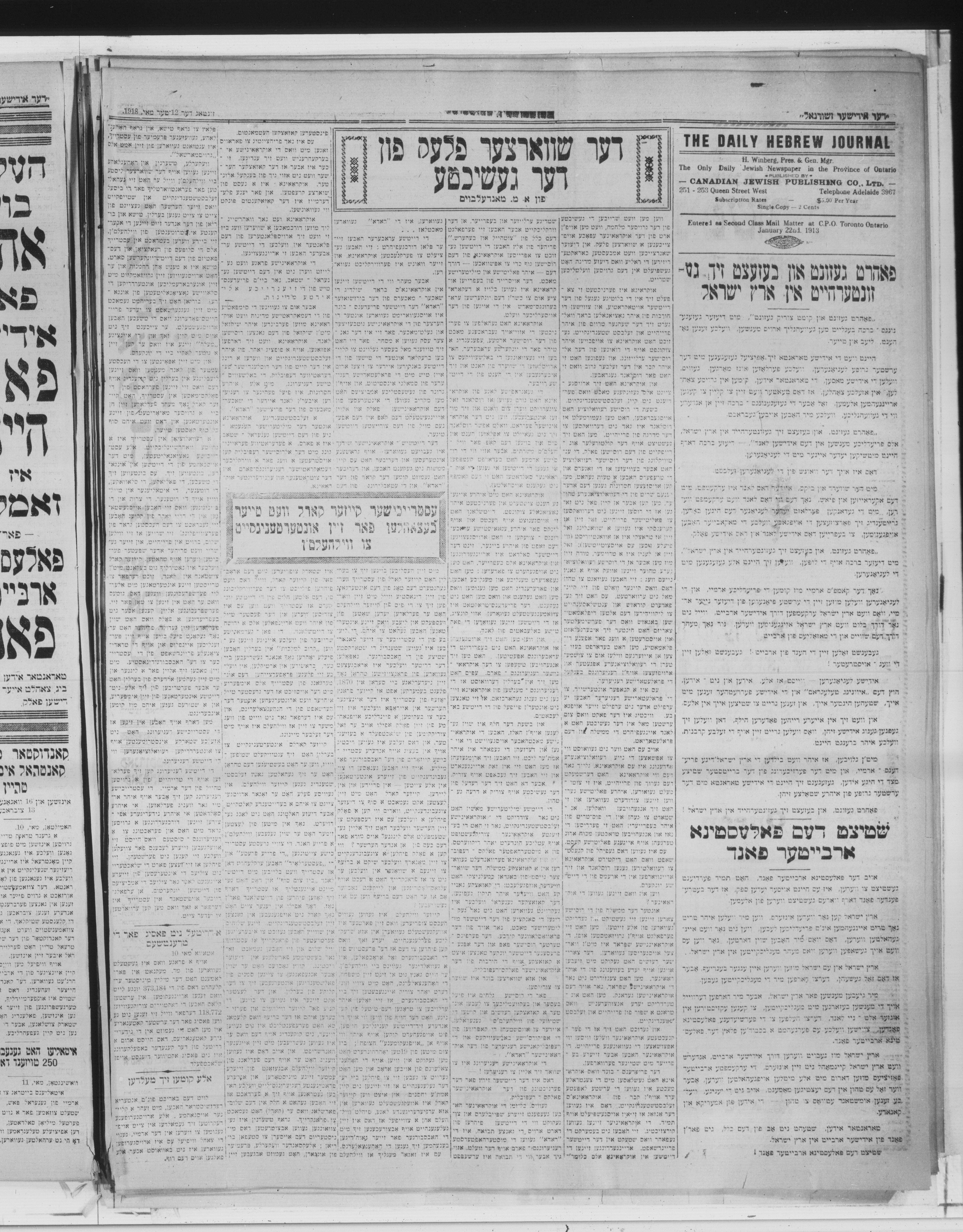 Der Yidisher zhurnal = The Hebrew journal : Volume IV, No. 2089 (May 12, 1918)