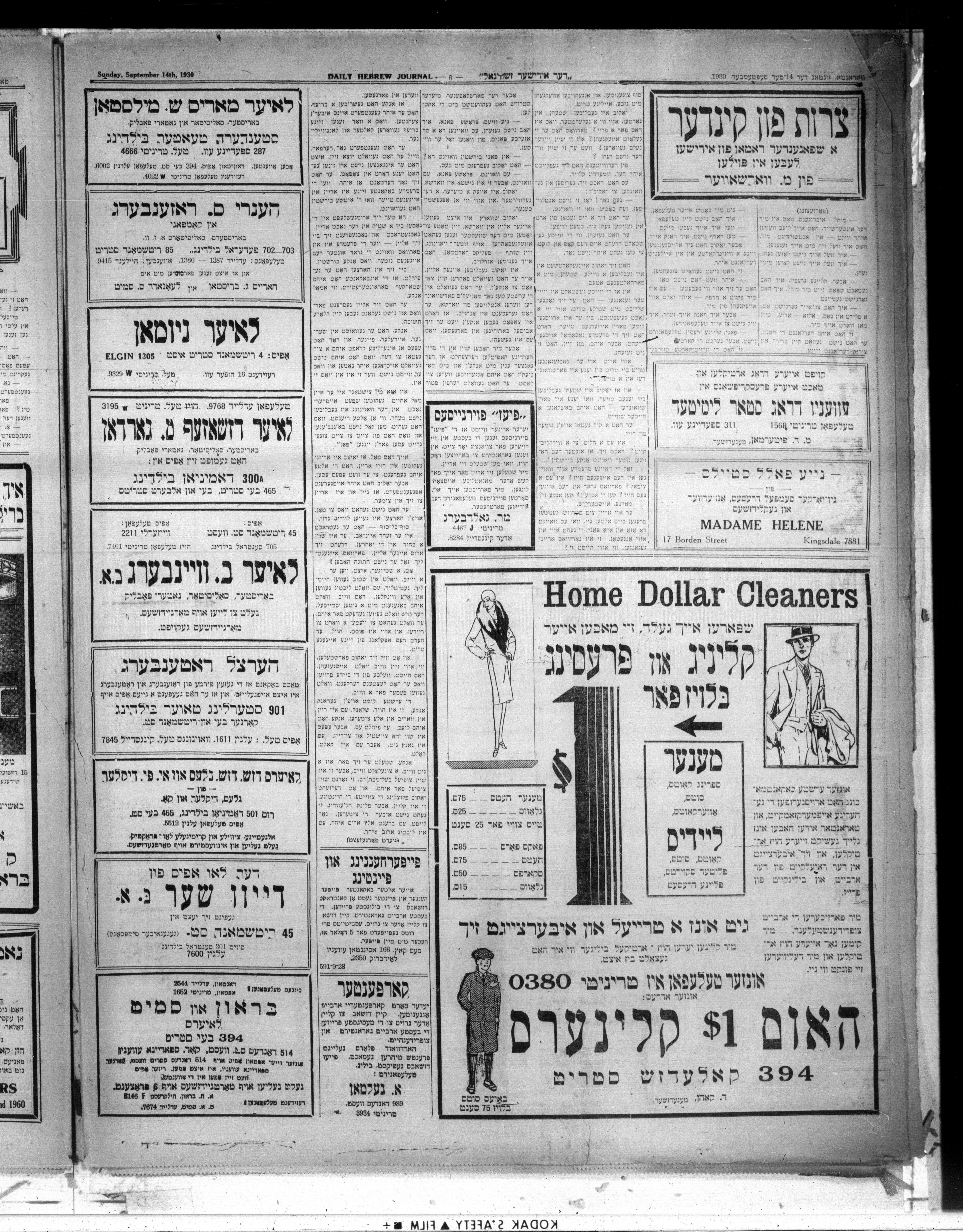 Der Yidisher zhurnal = : Der Yidisher zhurnal = The daily Hebrew journal : Volume XVII, No. 7401 (September 14, 1930)