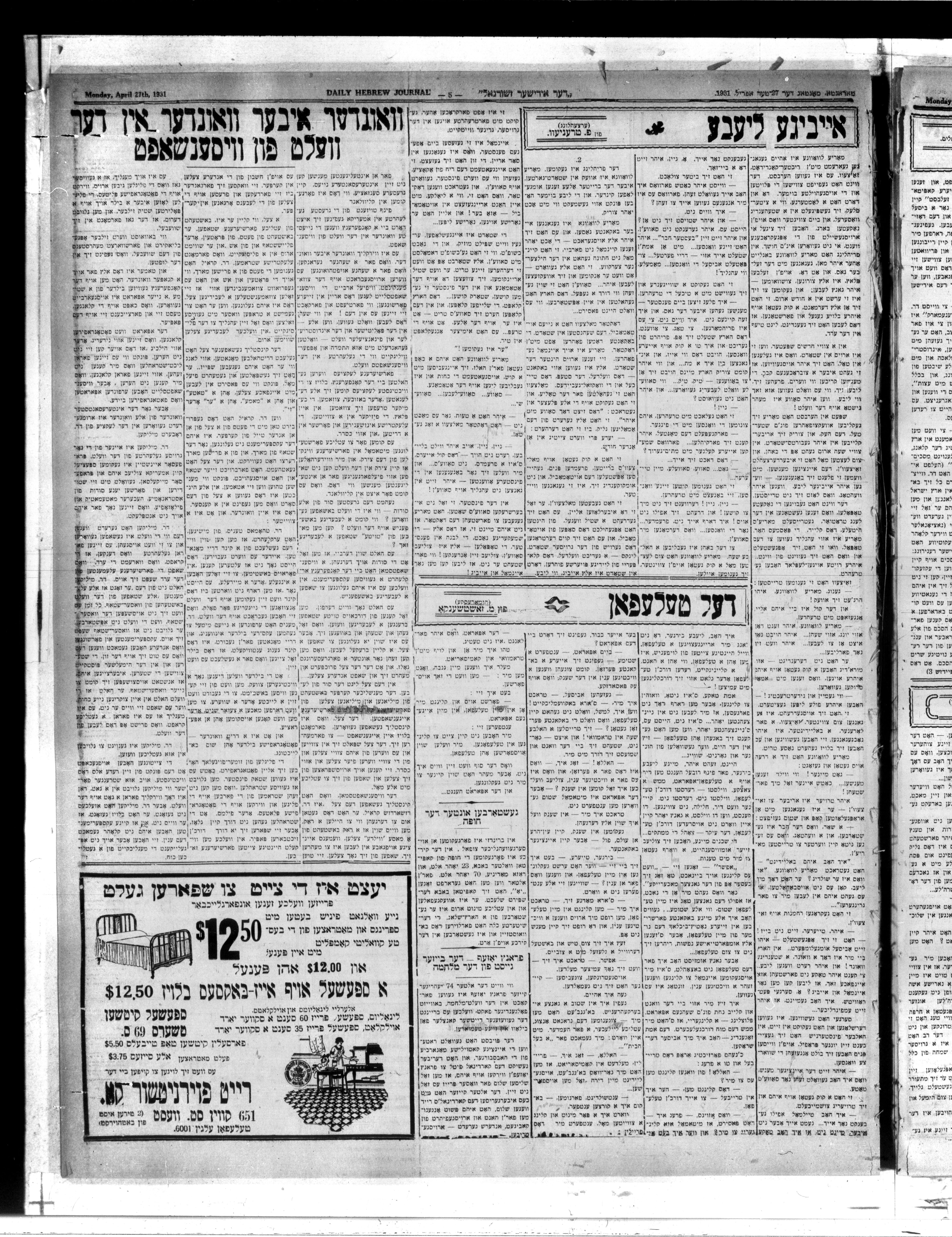 Der Yidisher zhurnal = The daily Hebrew journal : Volume XVIII, No. 7562 (April 27, 1931)