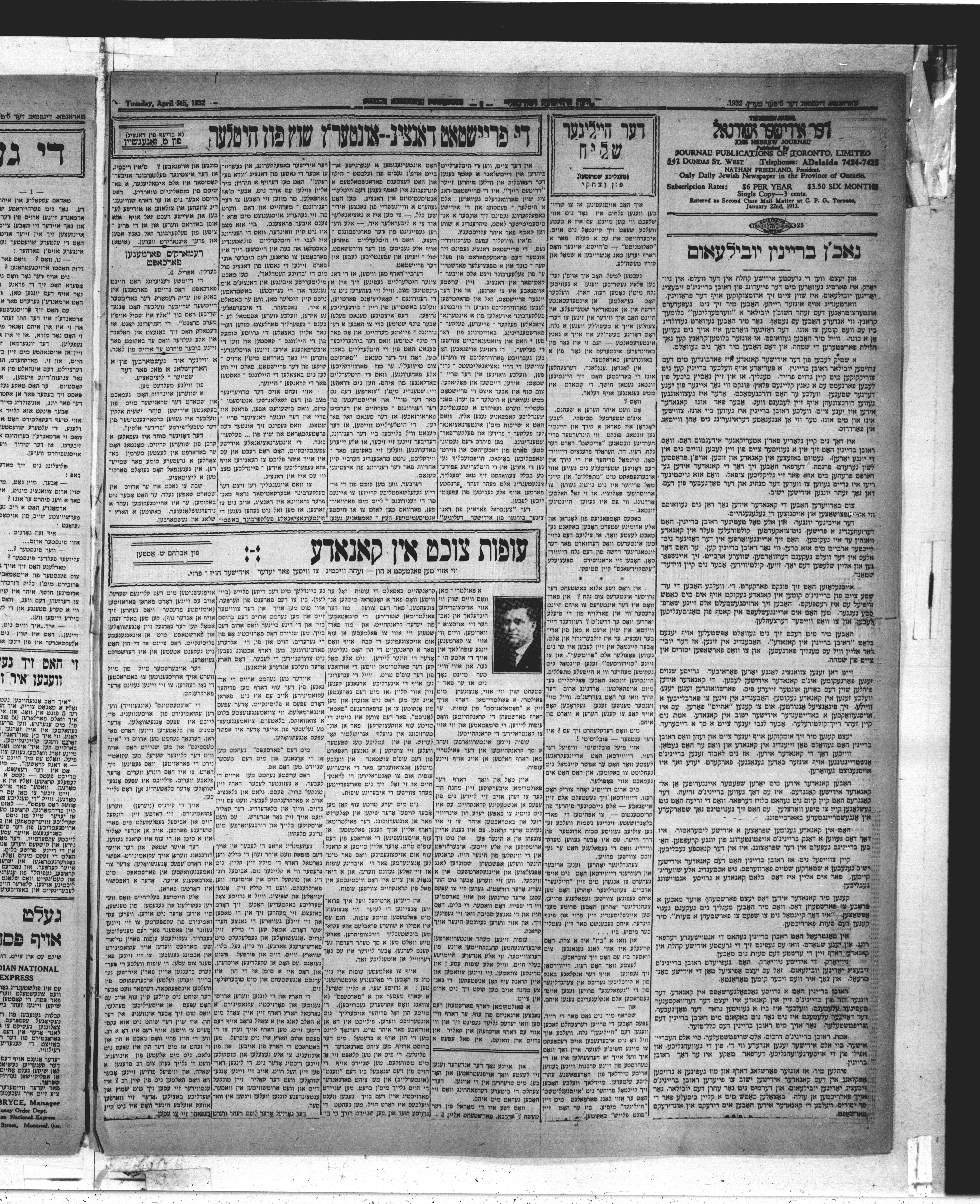 Der Yidisher zhurnal = : Der Yidisher zhurnal = The daily Hebrew journal : Volume XIX, No. 7836 (April 5, 1932)