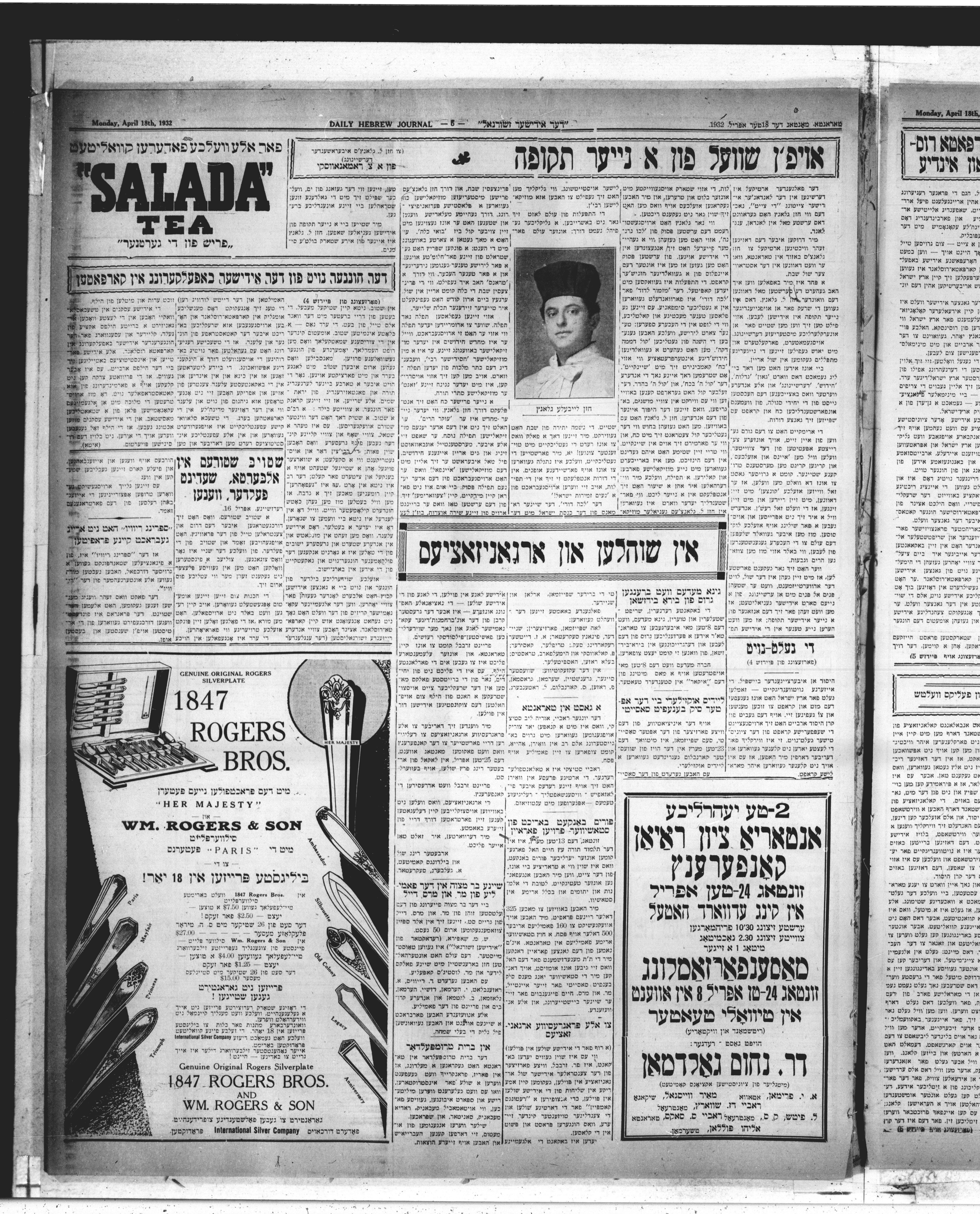 Der Yidisher zhurnal = : Der Yidisher zhurnal = The daily Hebrew journal : Volume XIX, No. 7847 (April 18, 1932)