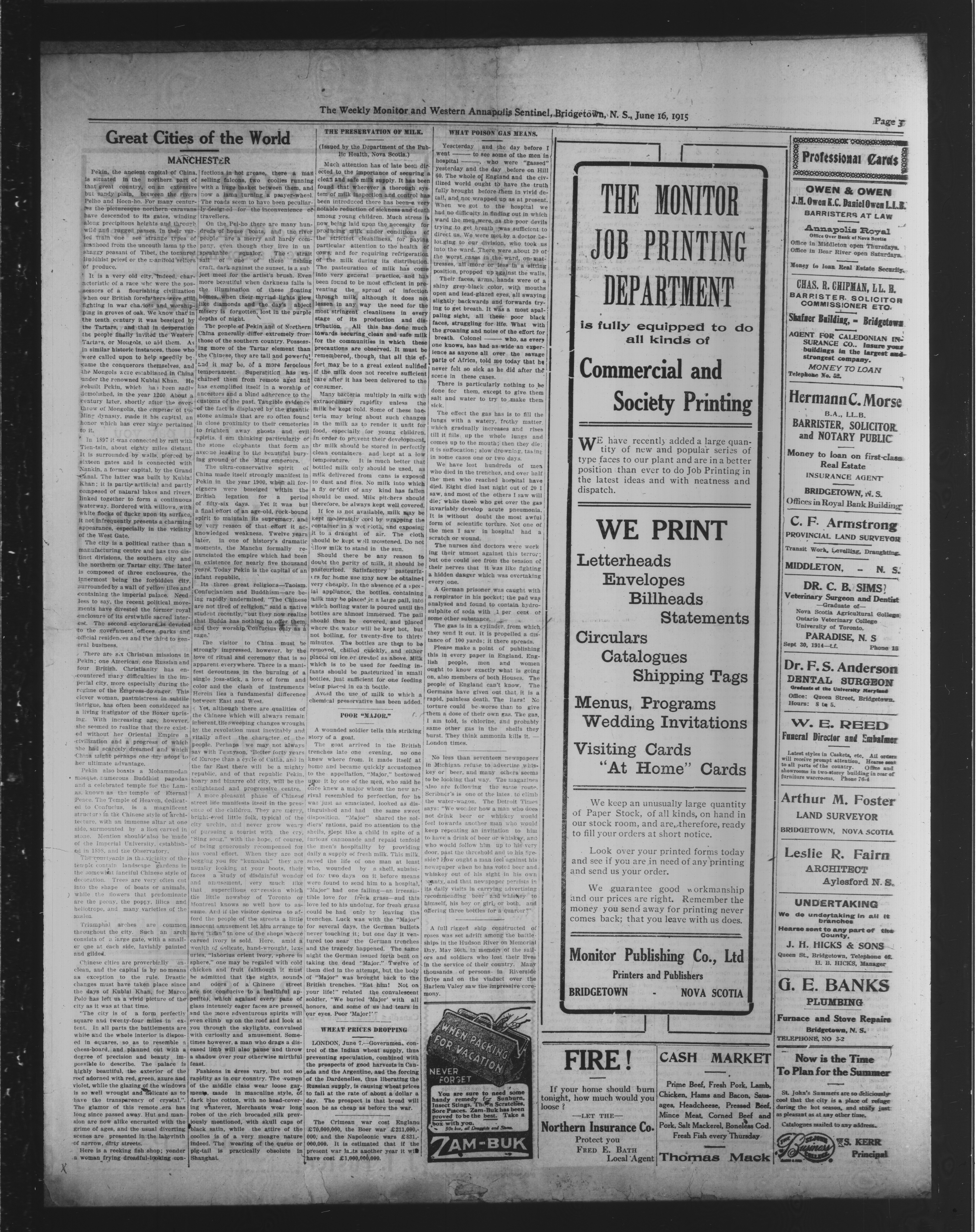 - Bridgetown, Annapolis County, Nova Scotia : The Monitor Publishing Co., Ltd, [1915]