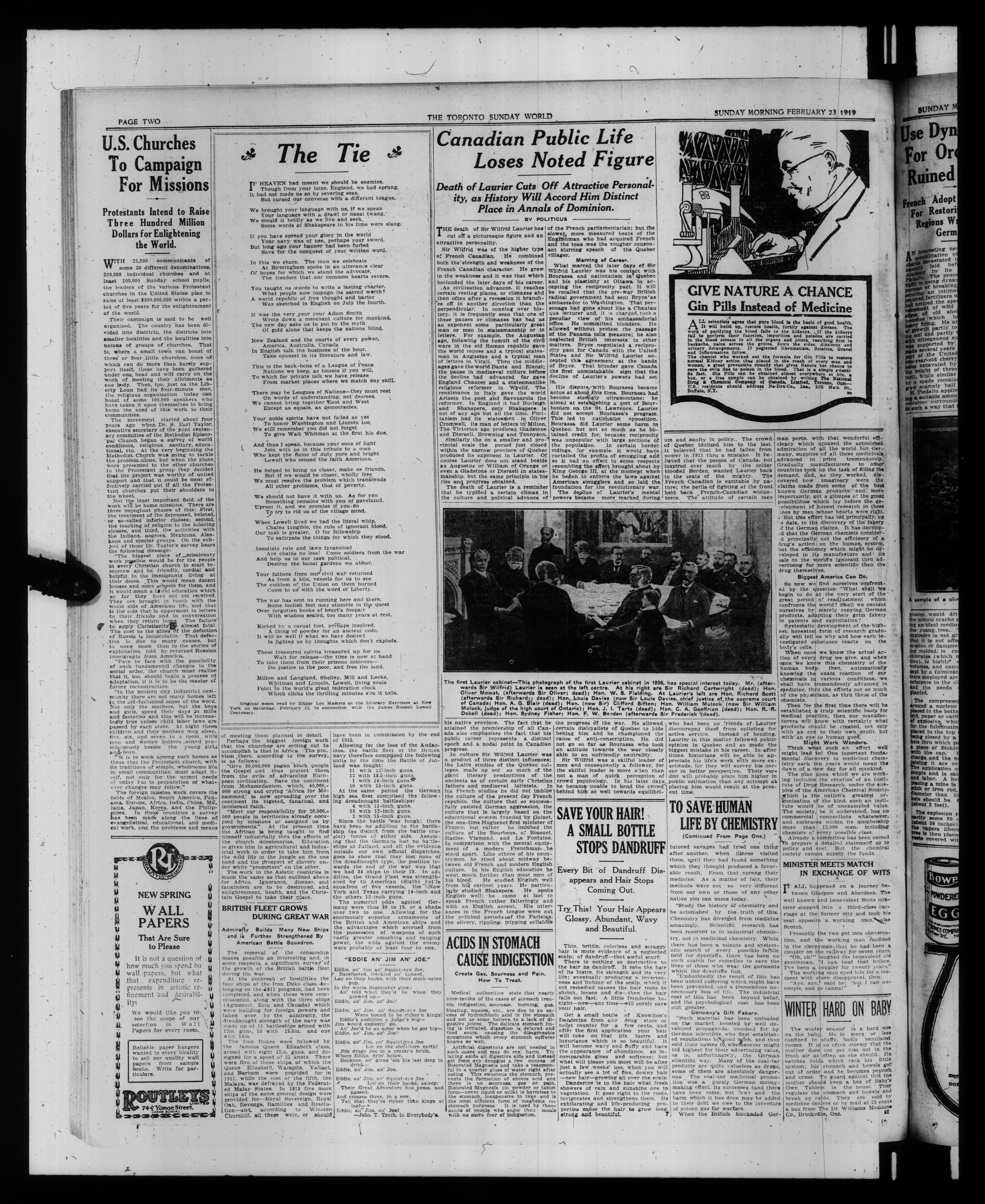 The Toronto Sunday World : Vol. XXXIX, No. 13,983 (February 23, 1919)