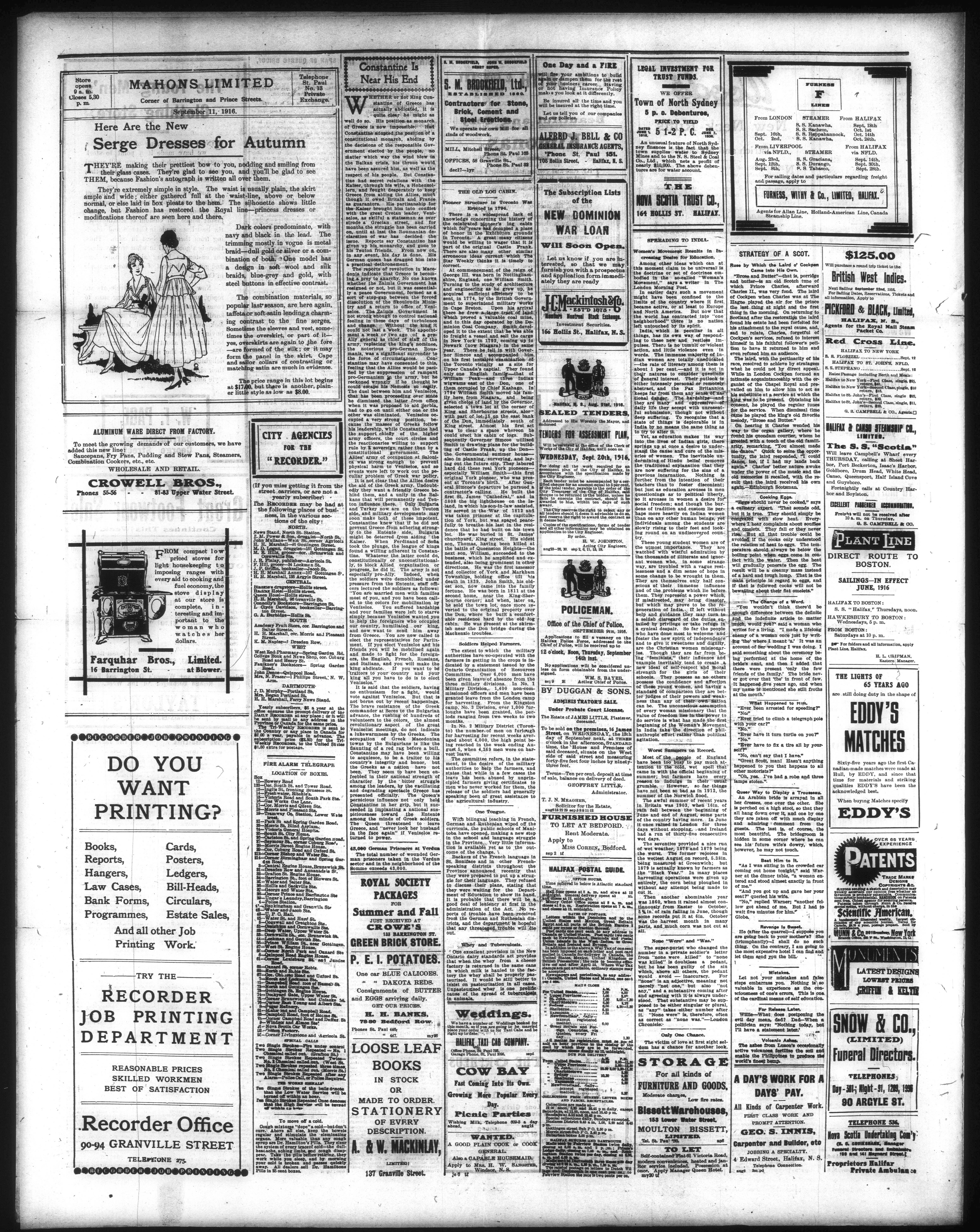 The Acadian recorder : Volume 104, No. 213 (September 11, 1916)
