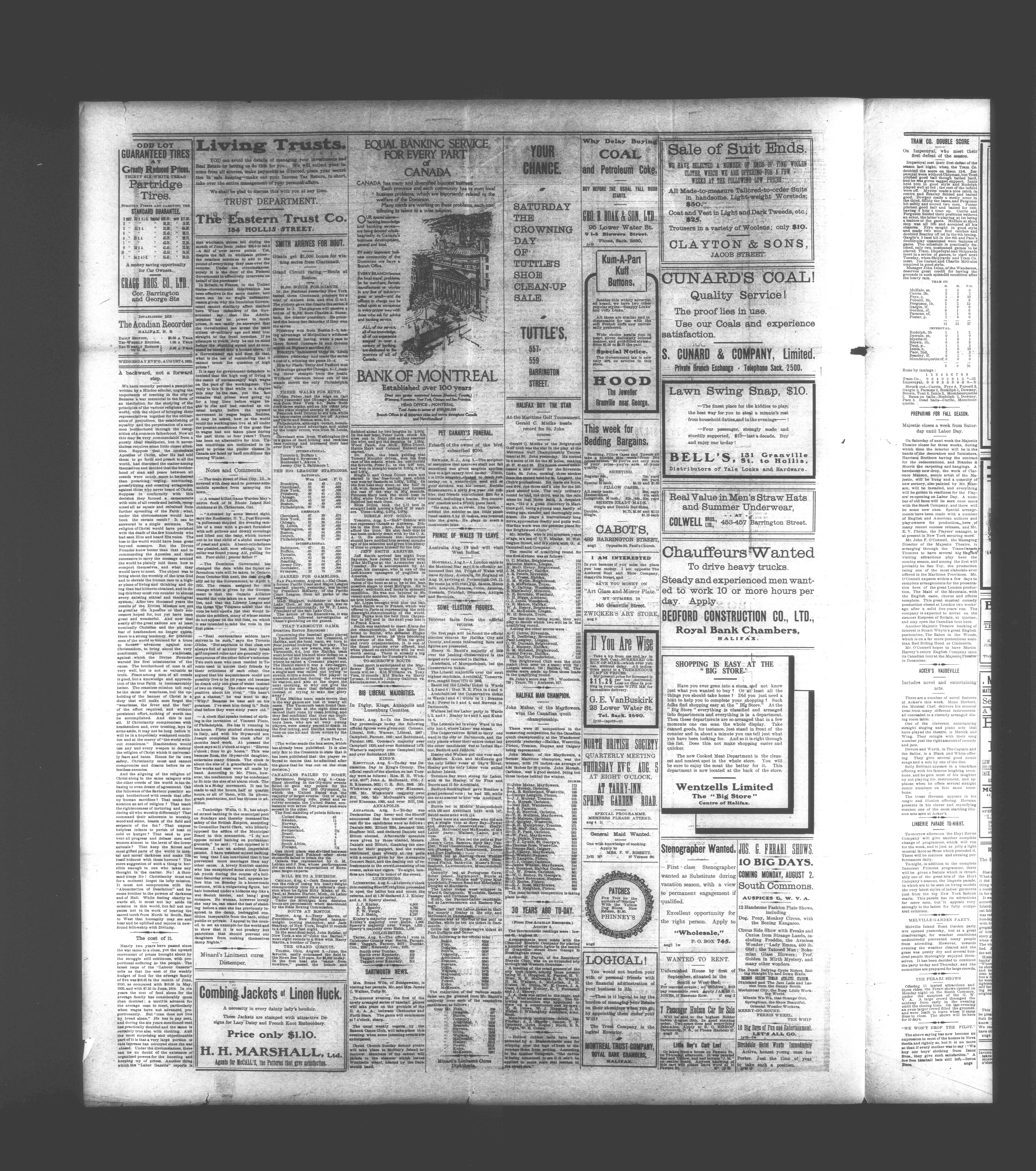 The Acadian recorder : Volume 108, No. 183 (August 4, 1920)