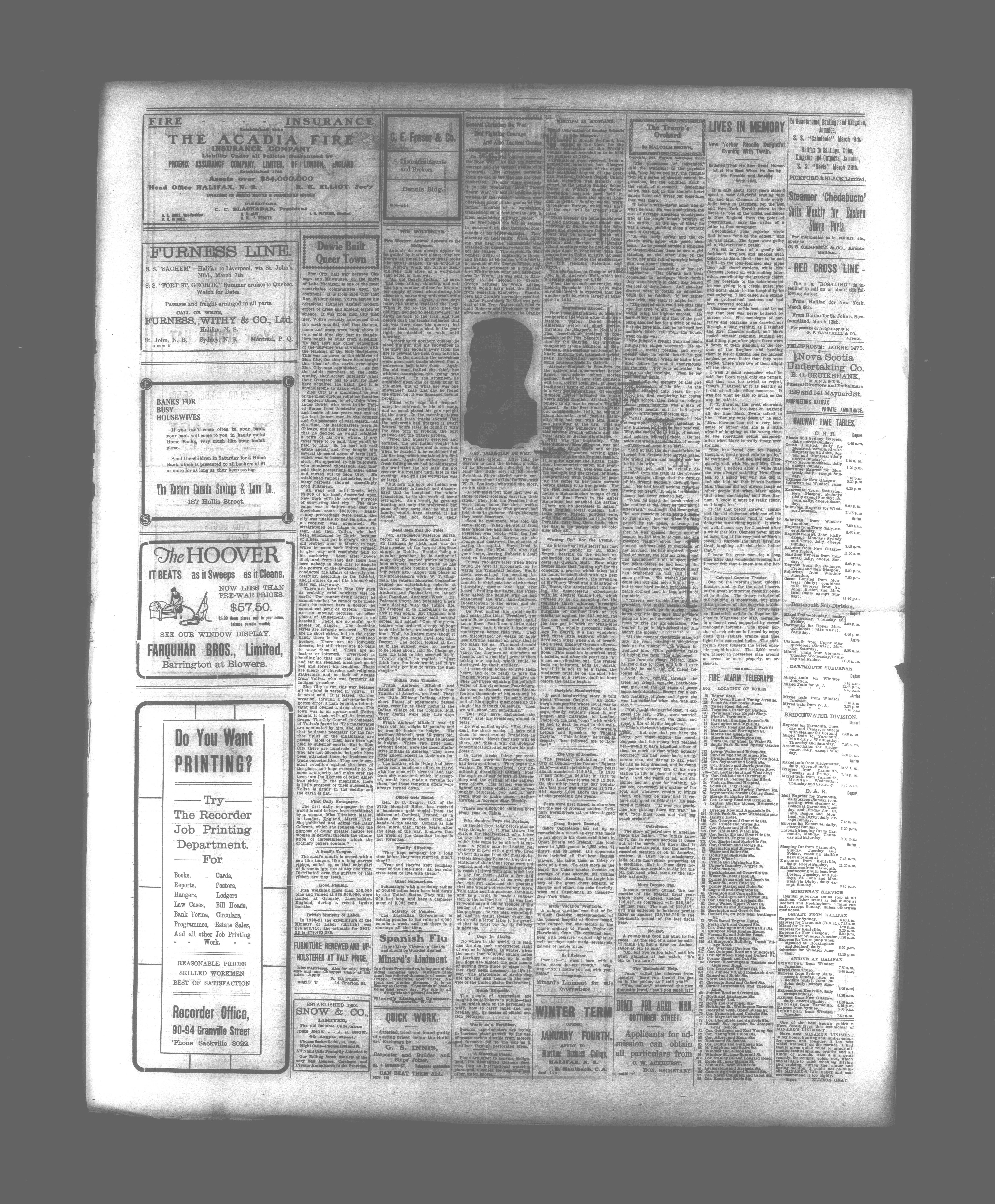 The Acadian recorder : Volume 110, No. 55 (March 6, 1922)