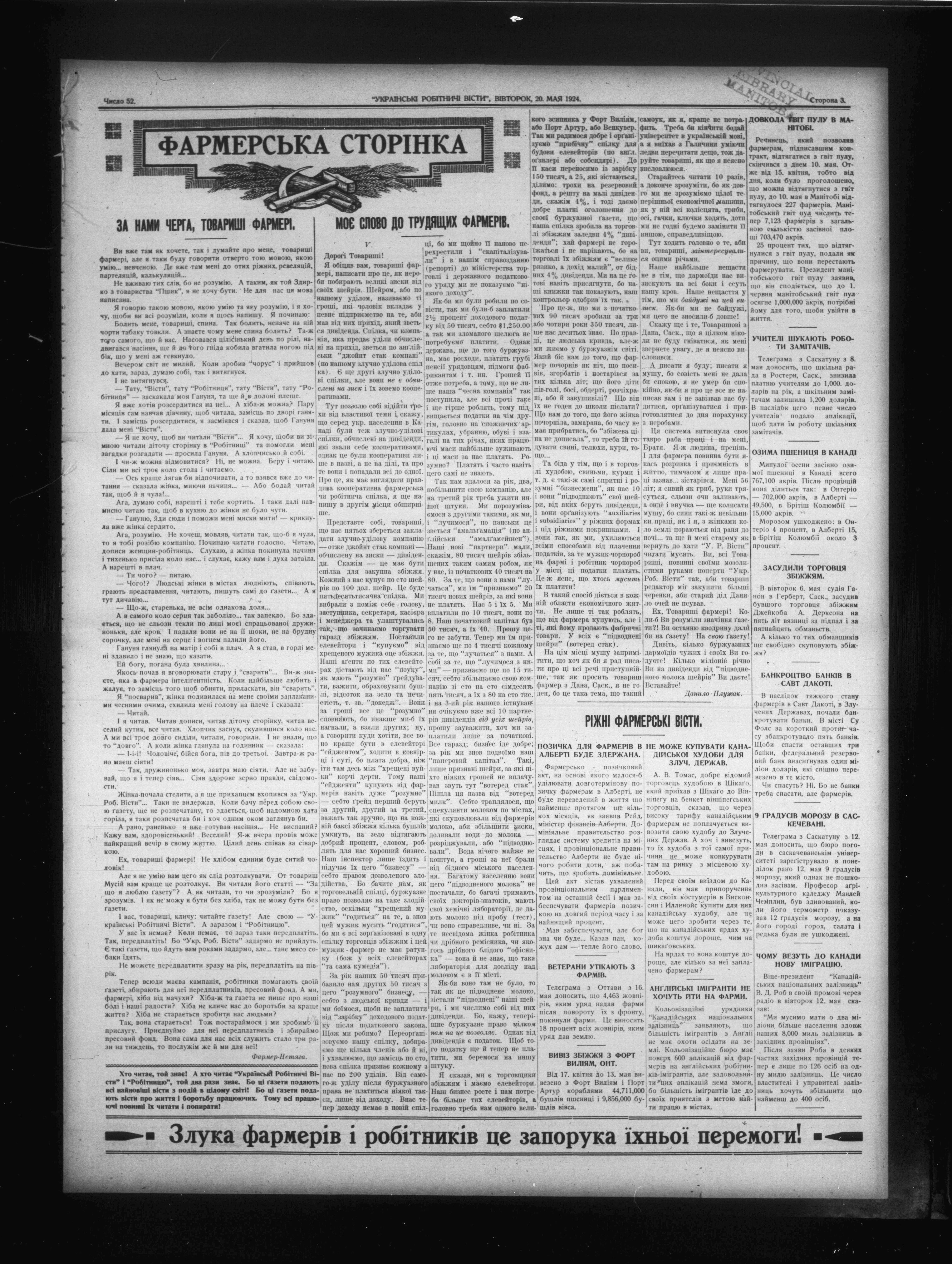 Ukraïnski robitnychi visty = Ukrainian labor news : Rik VI, Ch. 52 (20 Maia, 1924) = Vol. VI, No. 52 (May 20, 1924)